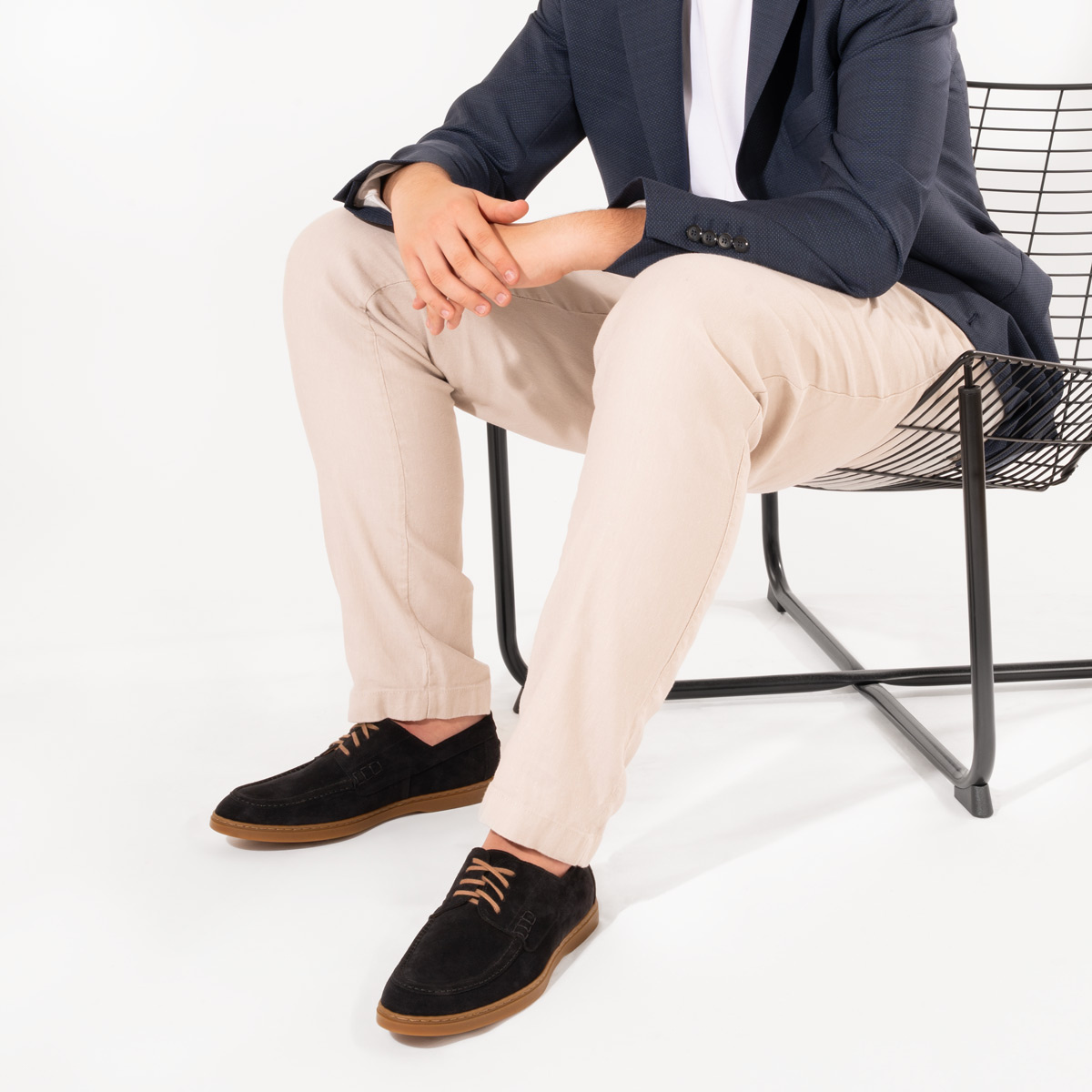 Skórzane zamszowe mokasyny sznurowane Knox czarne