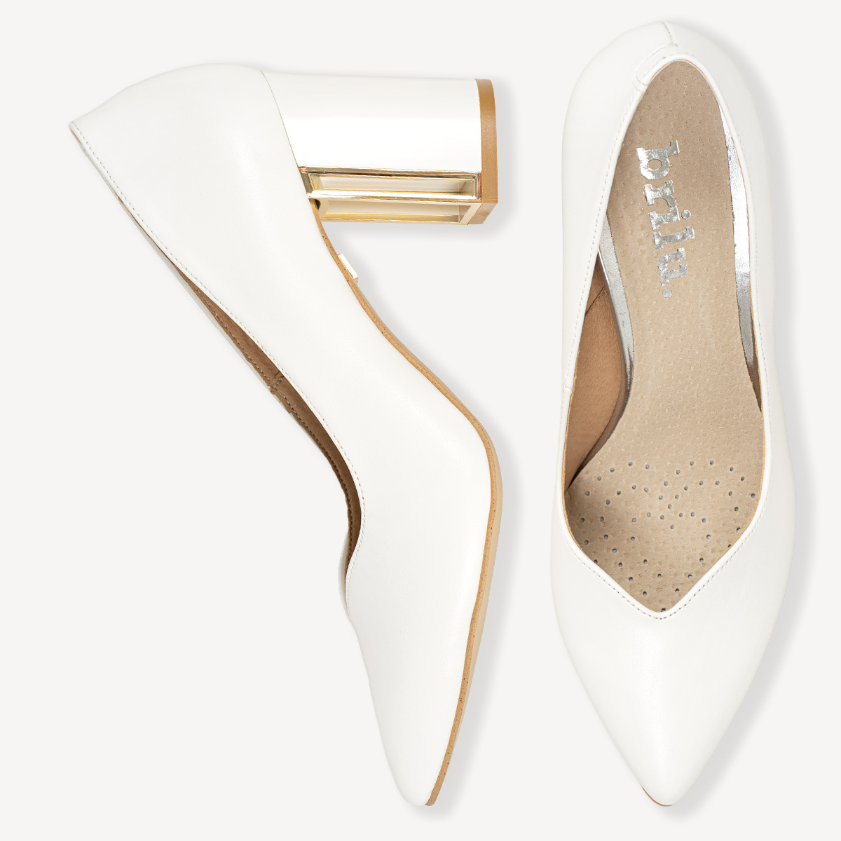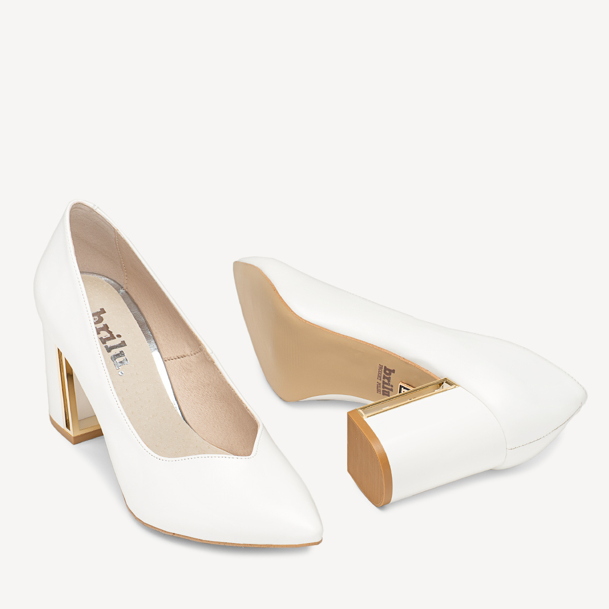 Ślubne czółenka z ozdobnym obcasem Vittoria białe