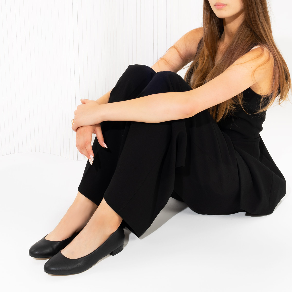 Balerinki czarne Irina to wyjątkowe buty damskie, które z powodzeniem zastąpią wysokie obcasy. Ich wnętrze wypełnia wkładka ze skóry naturalnej, która doskonale dopasowuje się do kształtu stopy, dzięki czemu zapewni wygodę przez długi czas. Będą pasować do spodni, sukienek na wesele, stylizacji do pracy, na spotkania, rodzinne uroczystości lub jako wygodne buty na zmianę. Model Irina to buty na płaskim obcasie - z pewnością staną się niezastąpionym elementem w garderobie każdej kobiety.