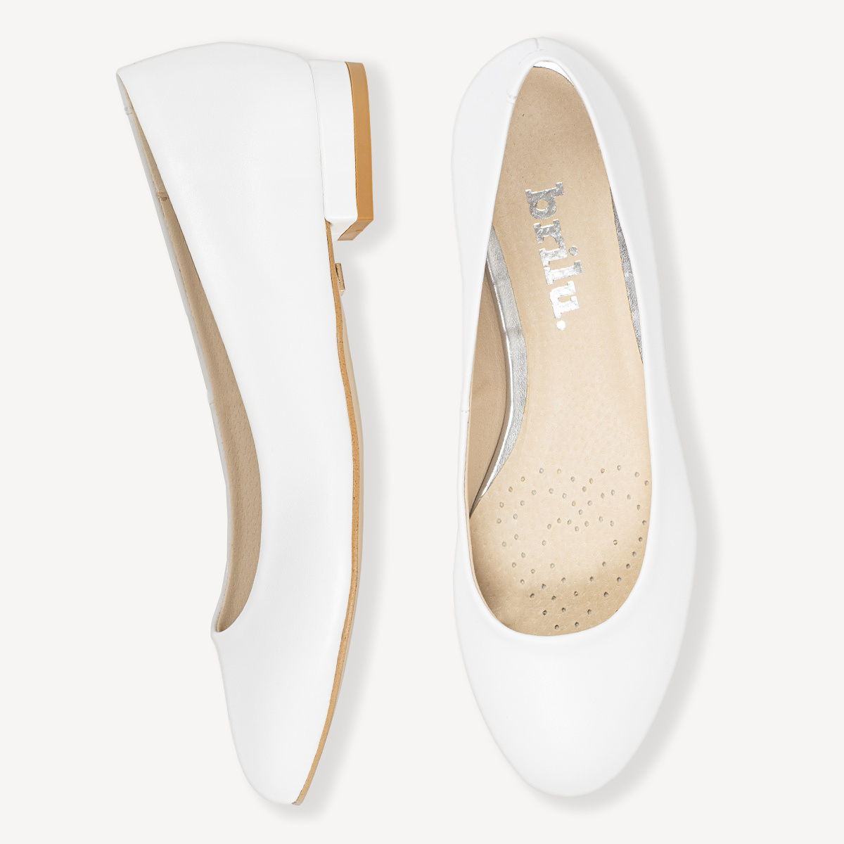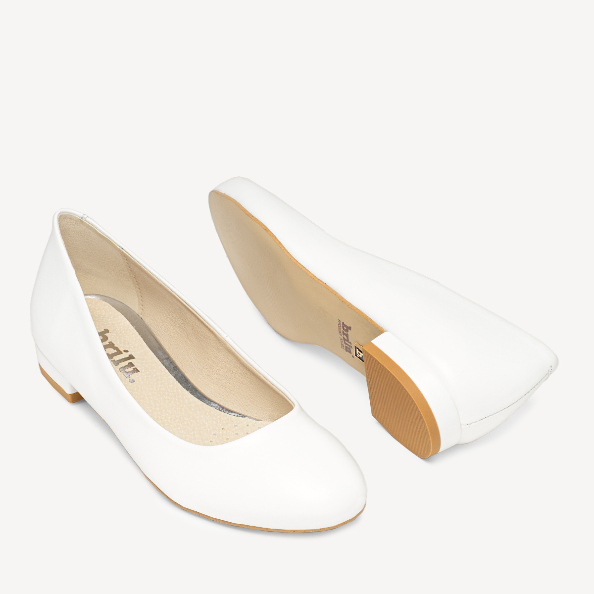 Balerinki ślubne białe Dreamy to wyjątkowe buty damskie, które z powodzeniem zastąpią wysokie obcasy. Ich wnętrze wypełnia wkładka ze skóry naturalnej, która doskonale dopasowuje się do kształtu stopy, dzięki czemu zapewni wygodę przez długi czas. Białe baleriny sprawdzą się nie tylko jako buty ślubne czy weselne, ale również jako balerinki na komunię, uroczyste przyjęcie czy eleganckie buty na zmianę. Model Dreamy to buty na płaskim obcasie - z pewnością staną się niezastąpionym elementem w garderobie każdej kobiety.