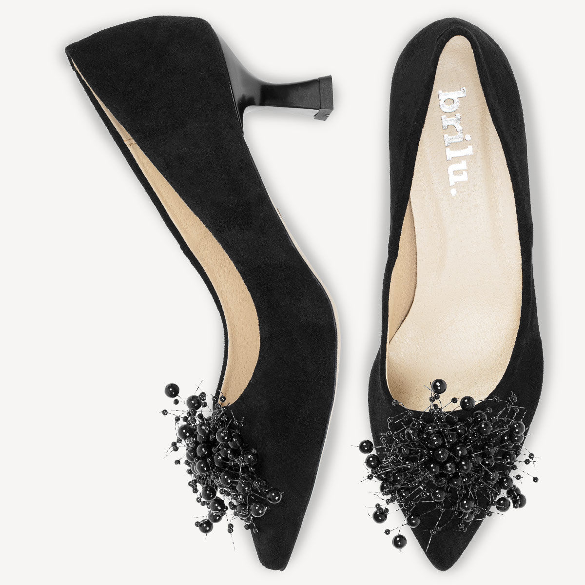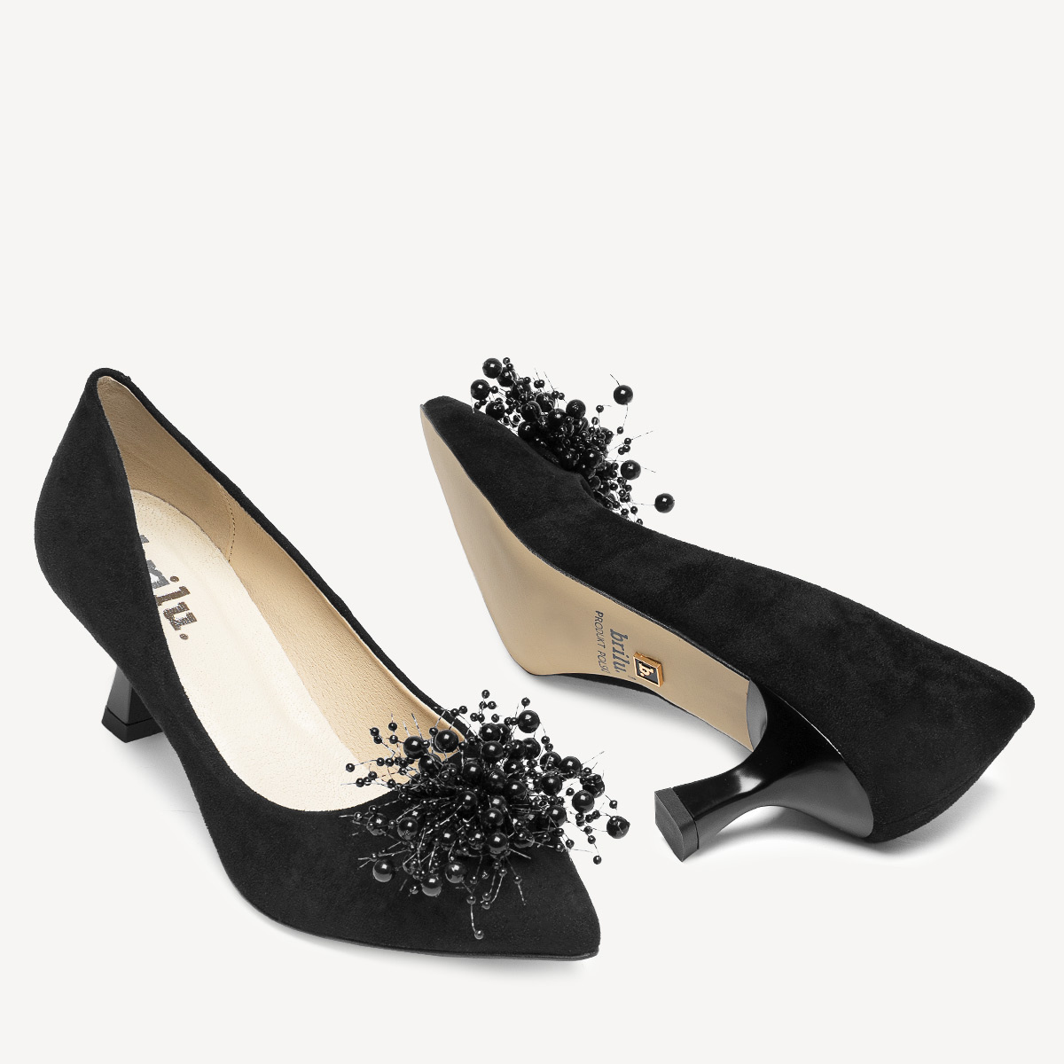 Czarne szpilki z perełkami Rovena - wyjątkowa kolekcja od polskiej marki Brilu.
