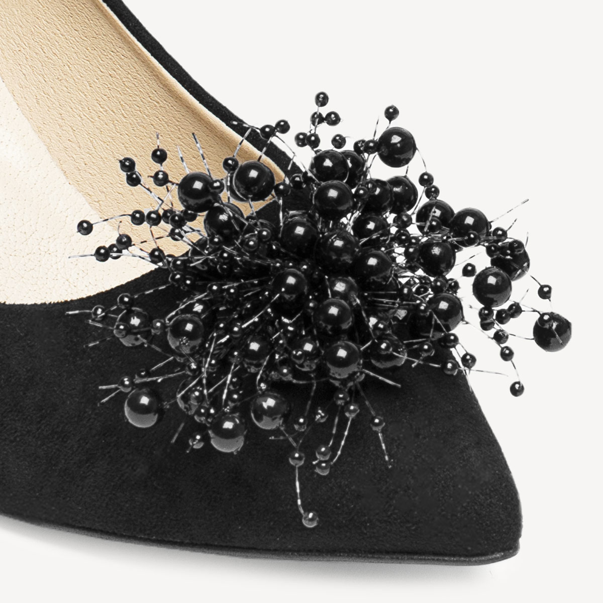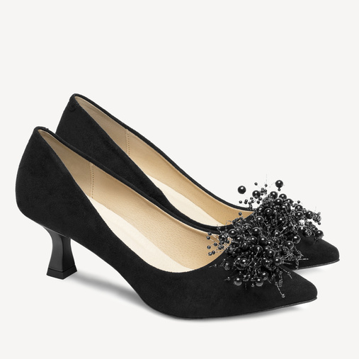Zamszowe szpilki z perełkową ozdobą Rovena czarne