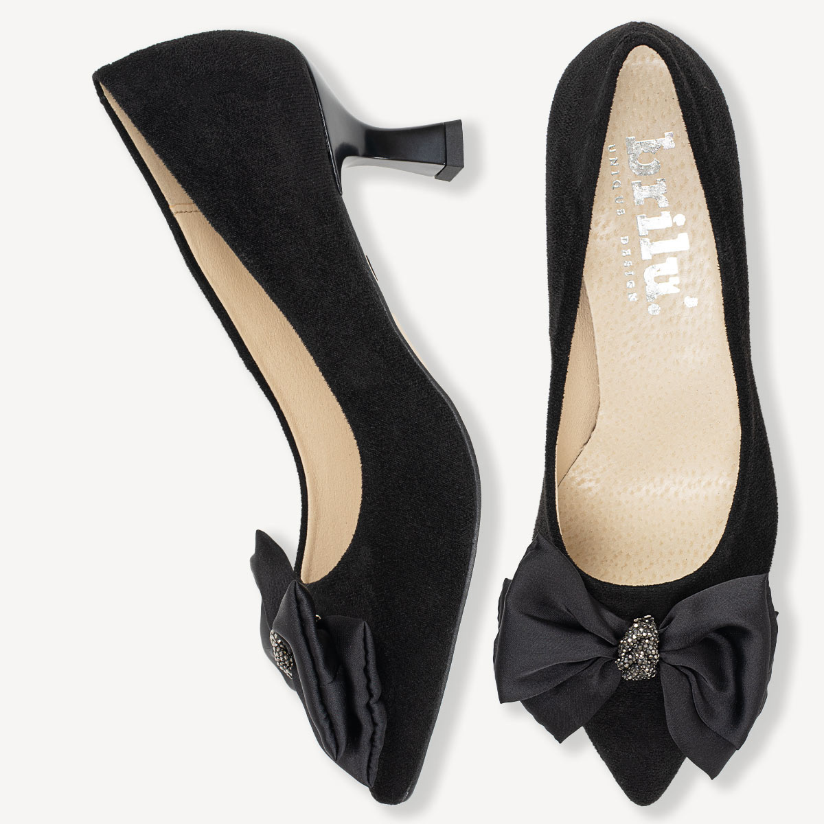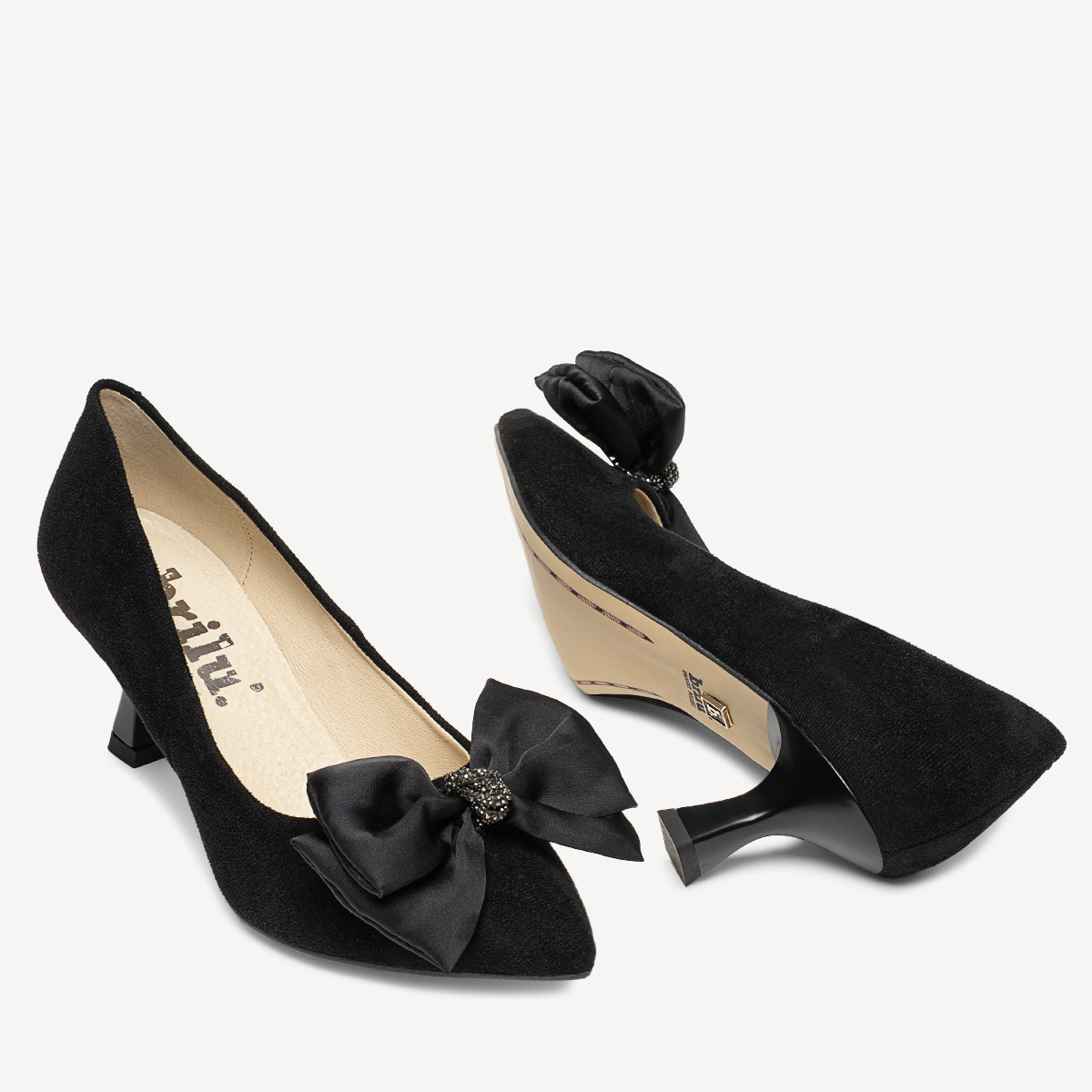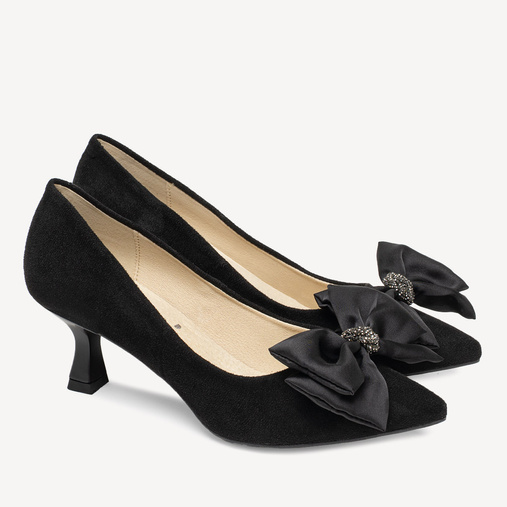 Zamszowe szpilki z ozdobną kokardą Claudia czarne