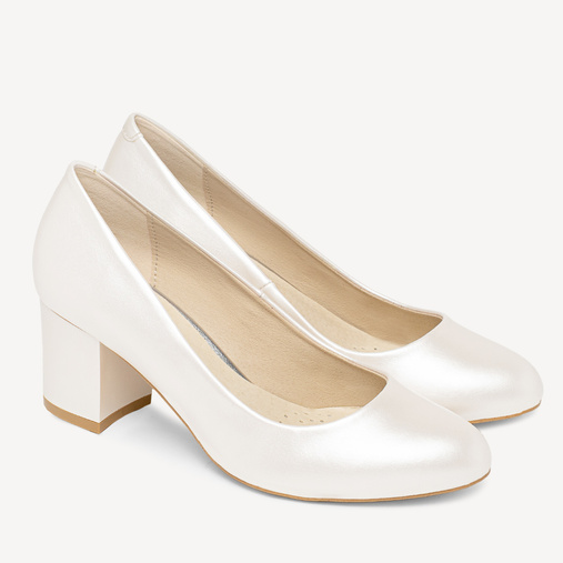 Ślubne perłowe klasyczne czółenka na słupku Lindsay ivory