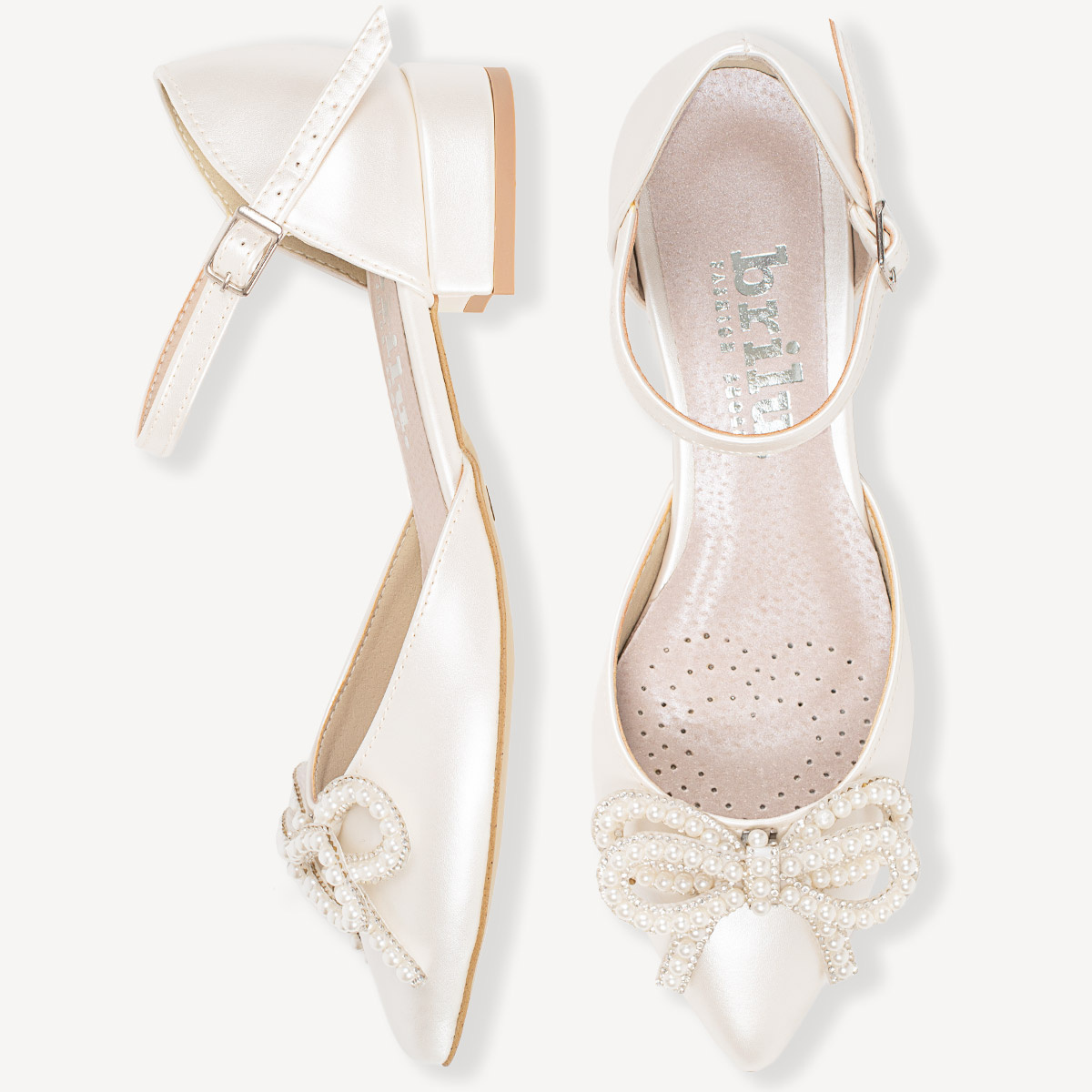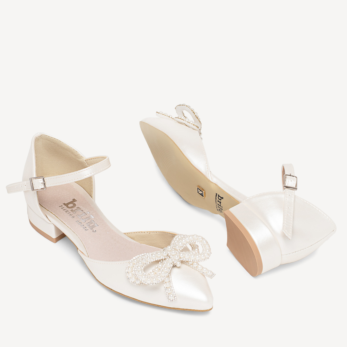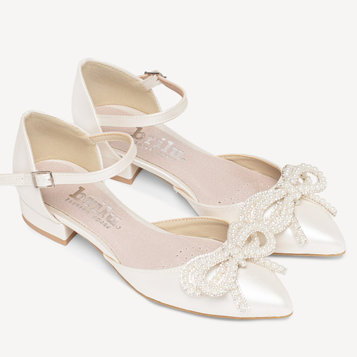 Ślubne perłowe balerinki z ozdobną kokardą Arlena ivory