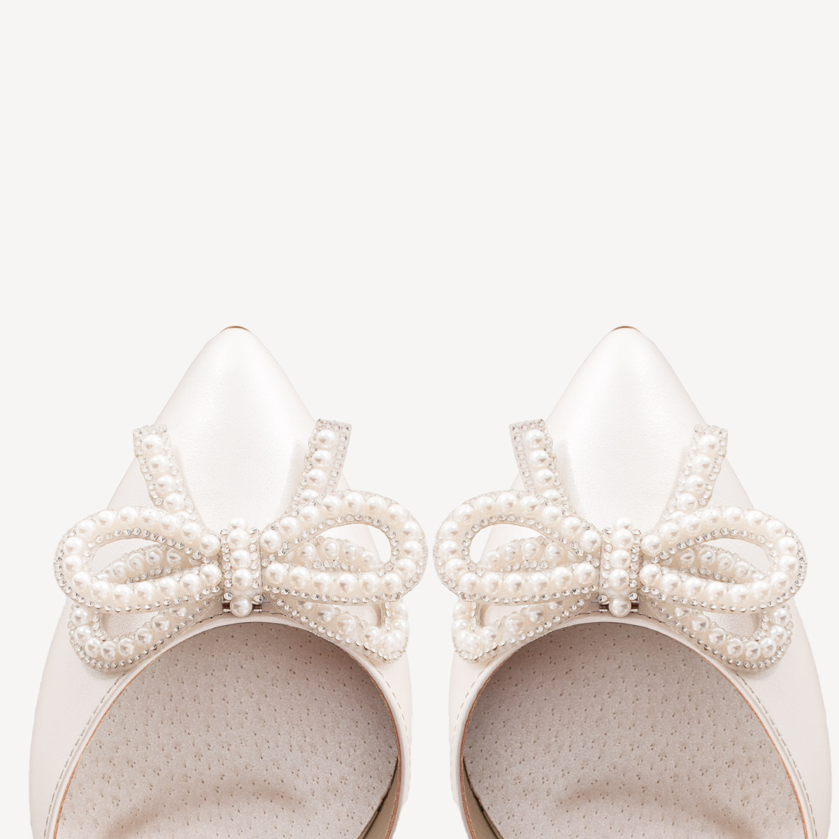 Ślubne perłowe balerinki z ozdobną kokardą Hestia ivory