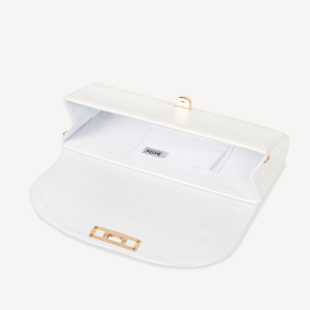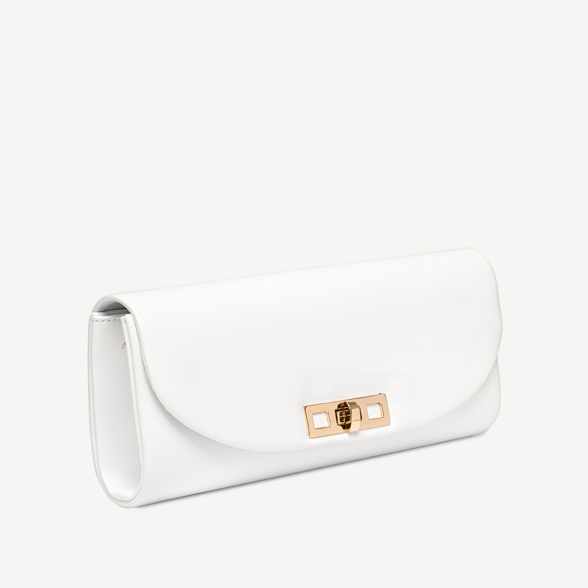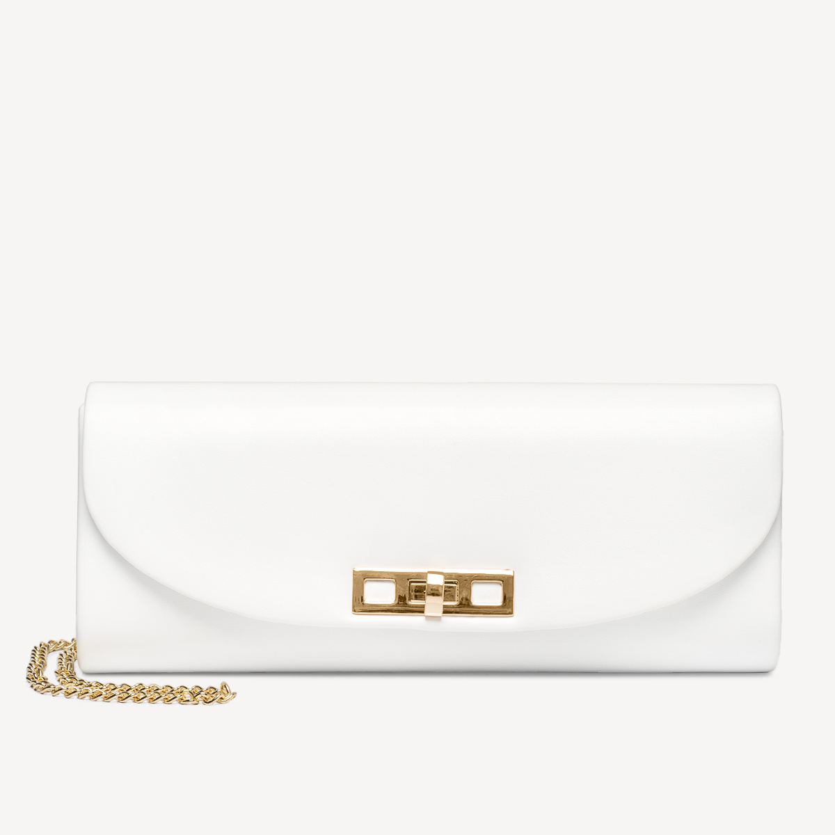 Ślubna podłużna kopertówka z odpinanym łańcuszkiem Kasjana biała