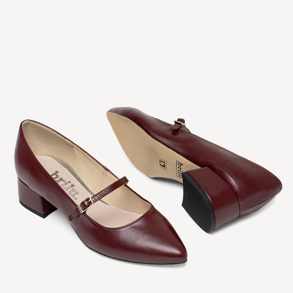 Czółenka na niskim obcasie z paskiem Aurely bordowe