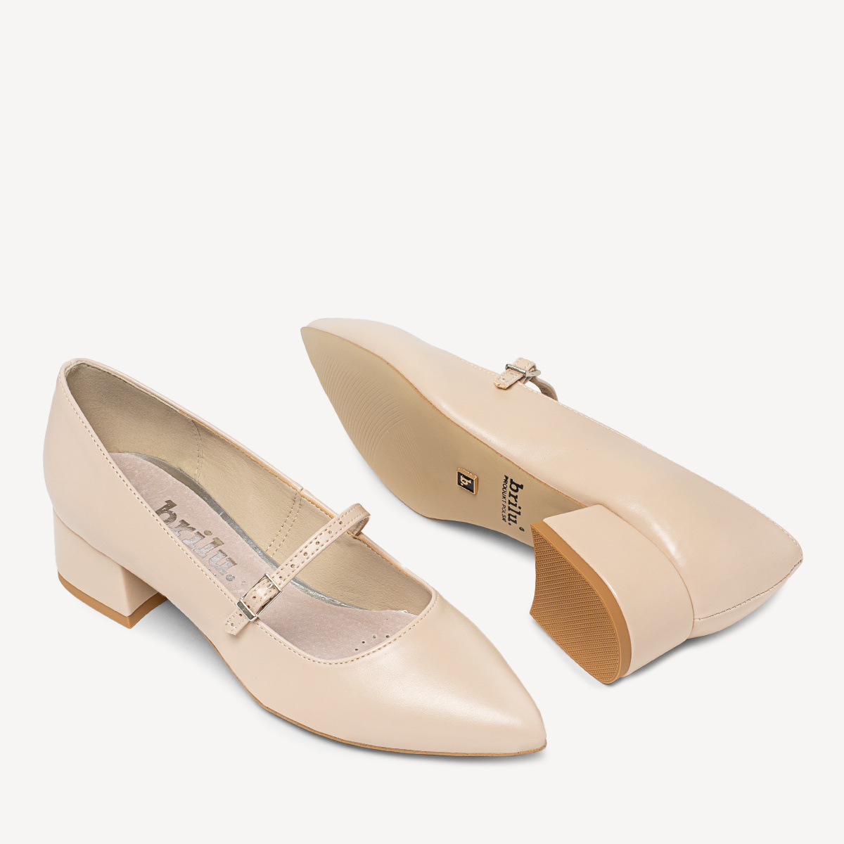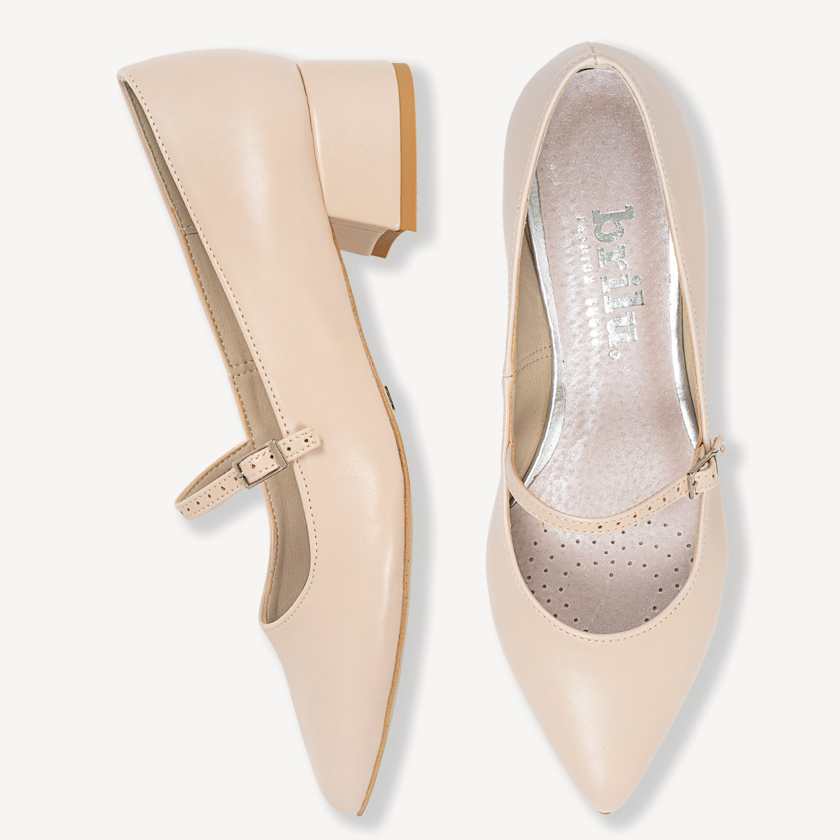 Czółenka na niskim obcasie z paskiem Aurely beżowe