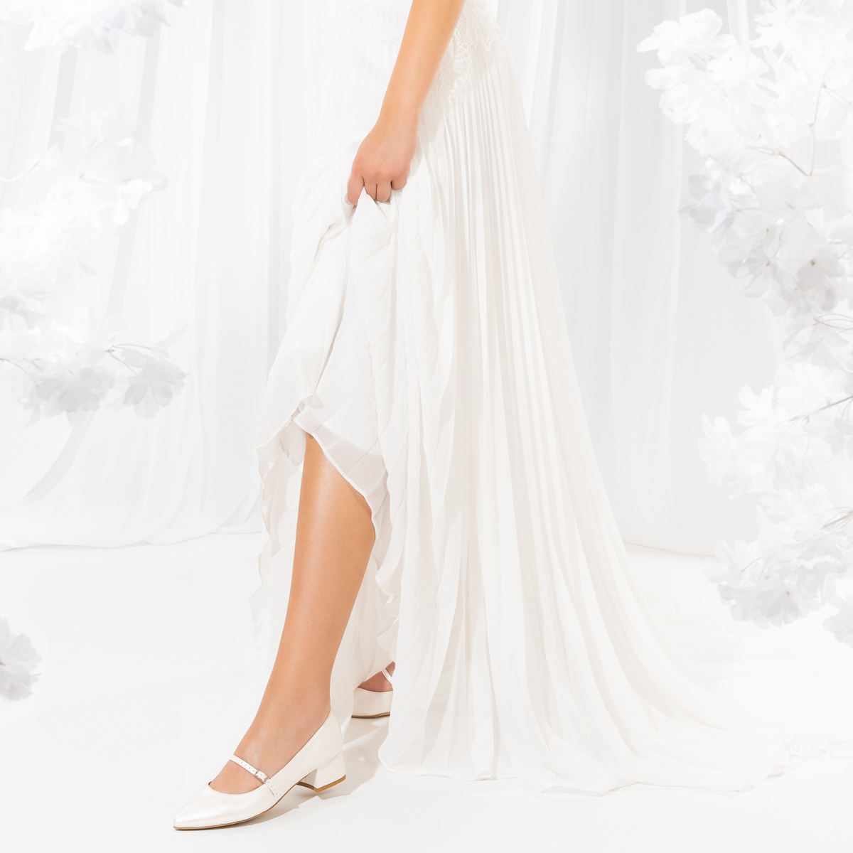 Czółenka ślubne Klara w kolorze ivory to perfekcyjny wybór dla kobiet ceniących połączenie wygody i ponadczasowej elegancji. Delikatny, jasny odcień sprawia, że buty znakomicie skomponują się z różnorodnymi fasonami sukien ślubnych. Czółenka ivory podkreślą wyjątkowy charakter każdej stylizacji i doskonale sprawdzą się podczas całego dnia uroczystości.