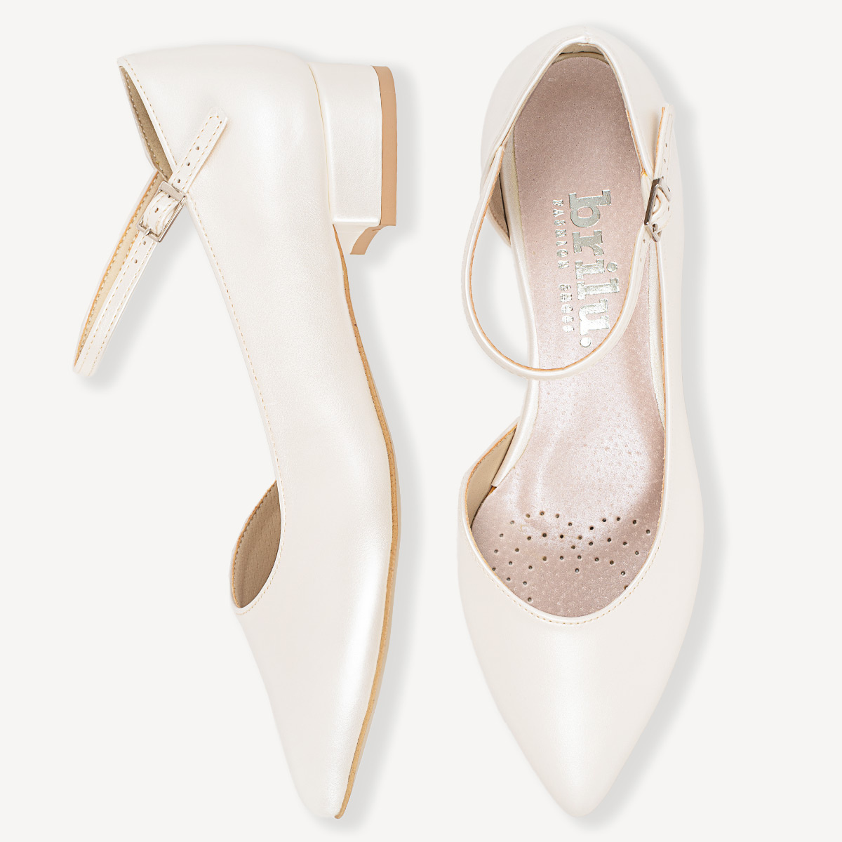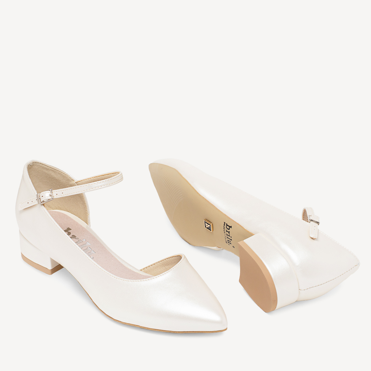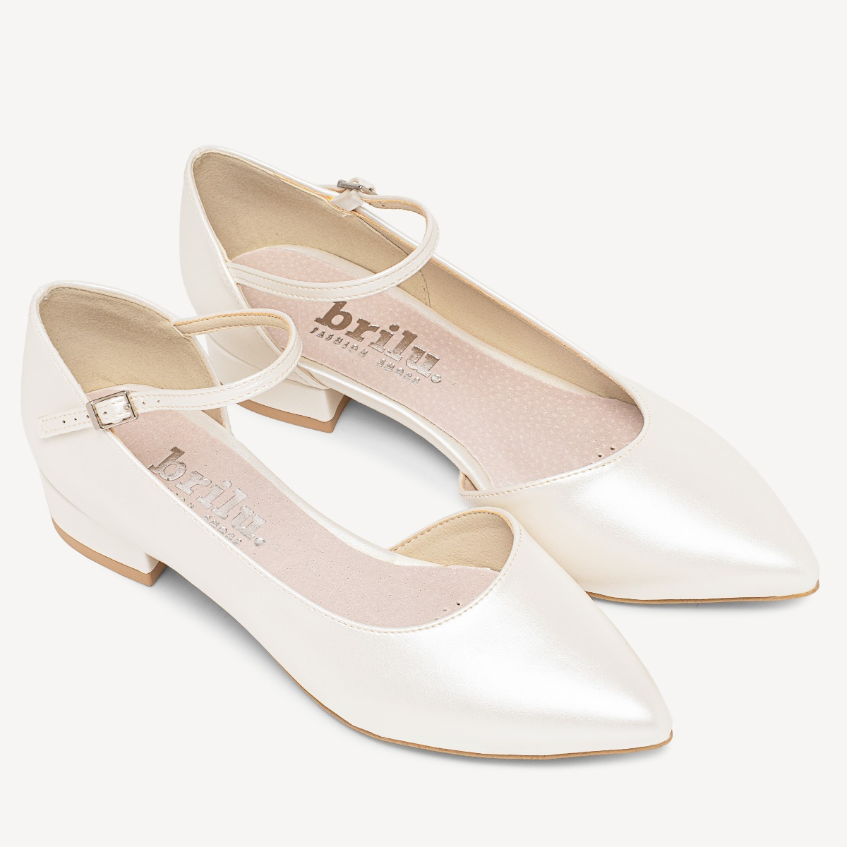 Ślubne perłowe asymetryczne balerinki z paskiem Sorina ivory