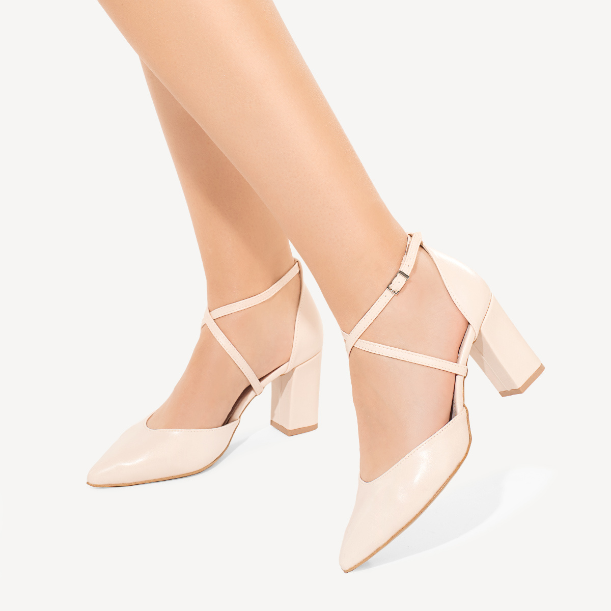 Ślubne czółenka na słupku z paskami Alessia cieliste ecru