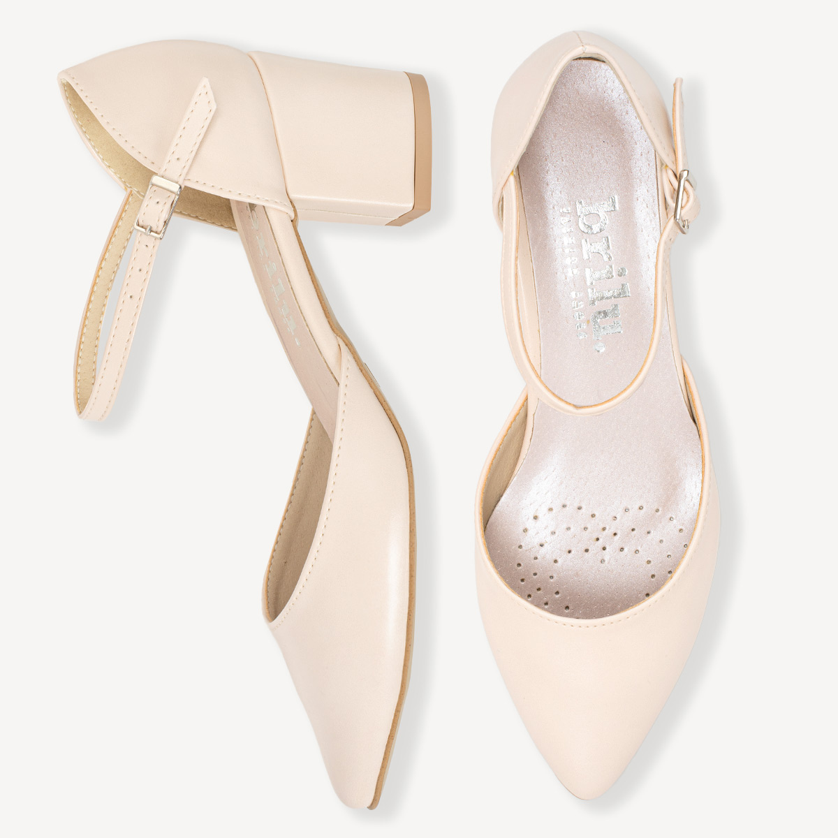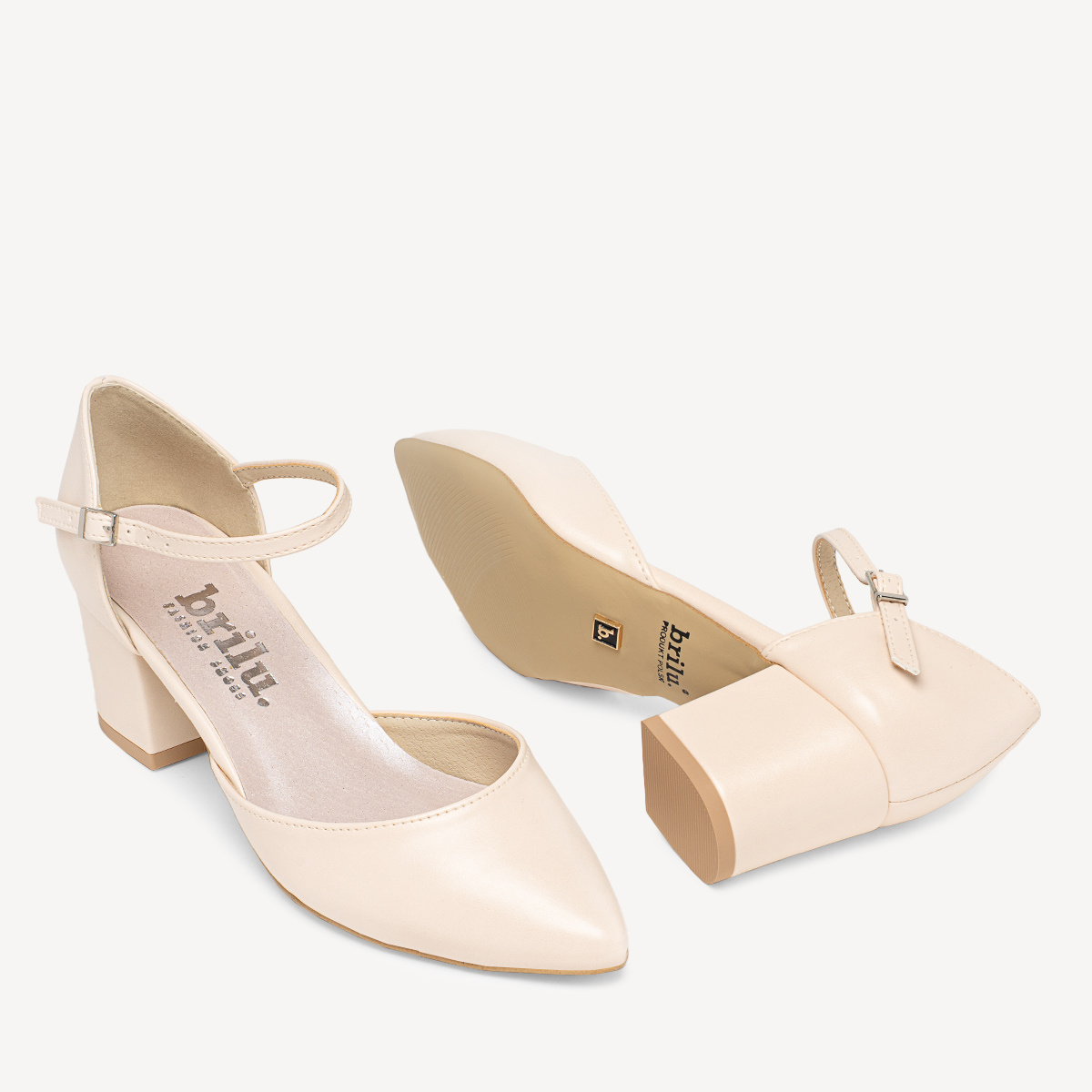 Ślubne czółenka na słupku z paskiem Spring cieliste ecru