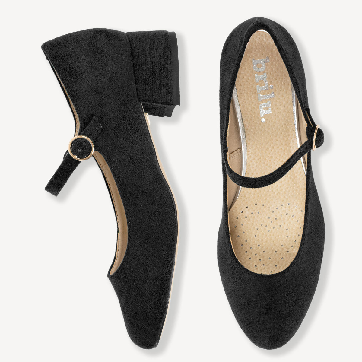 Zamszowe czółenka na niskim obcasie Irma czarne
