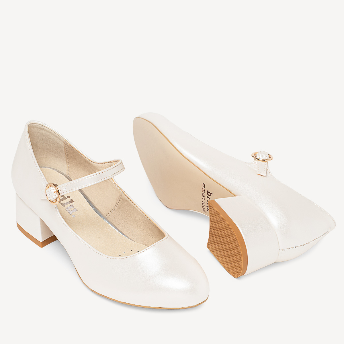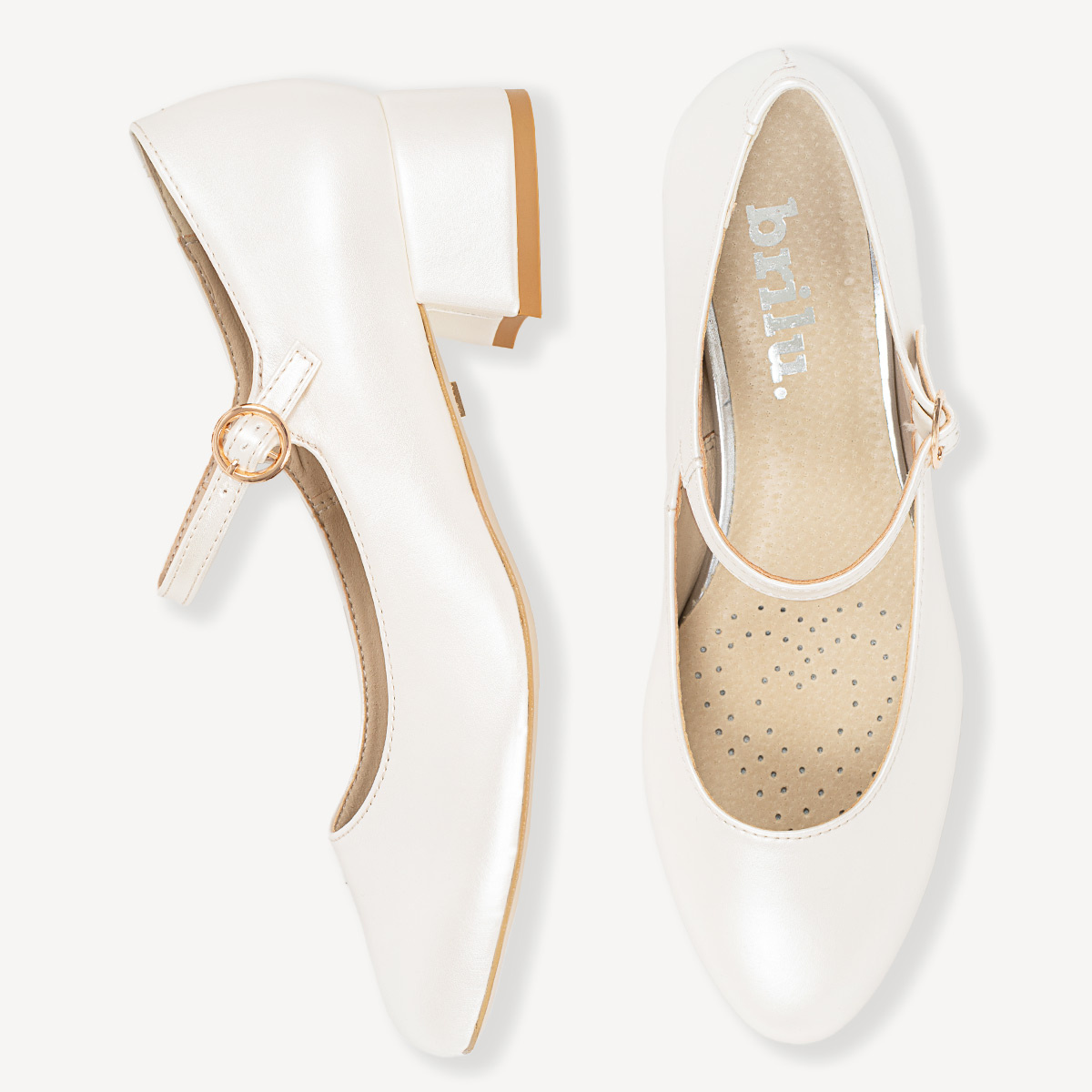 Ślubne perłowe czółenka na niskim obcasie Loretta ivory