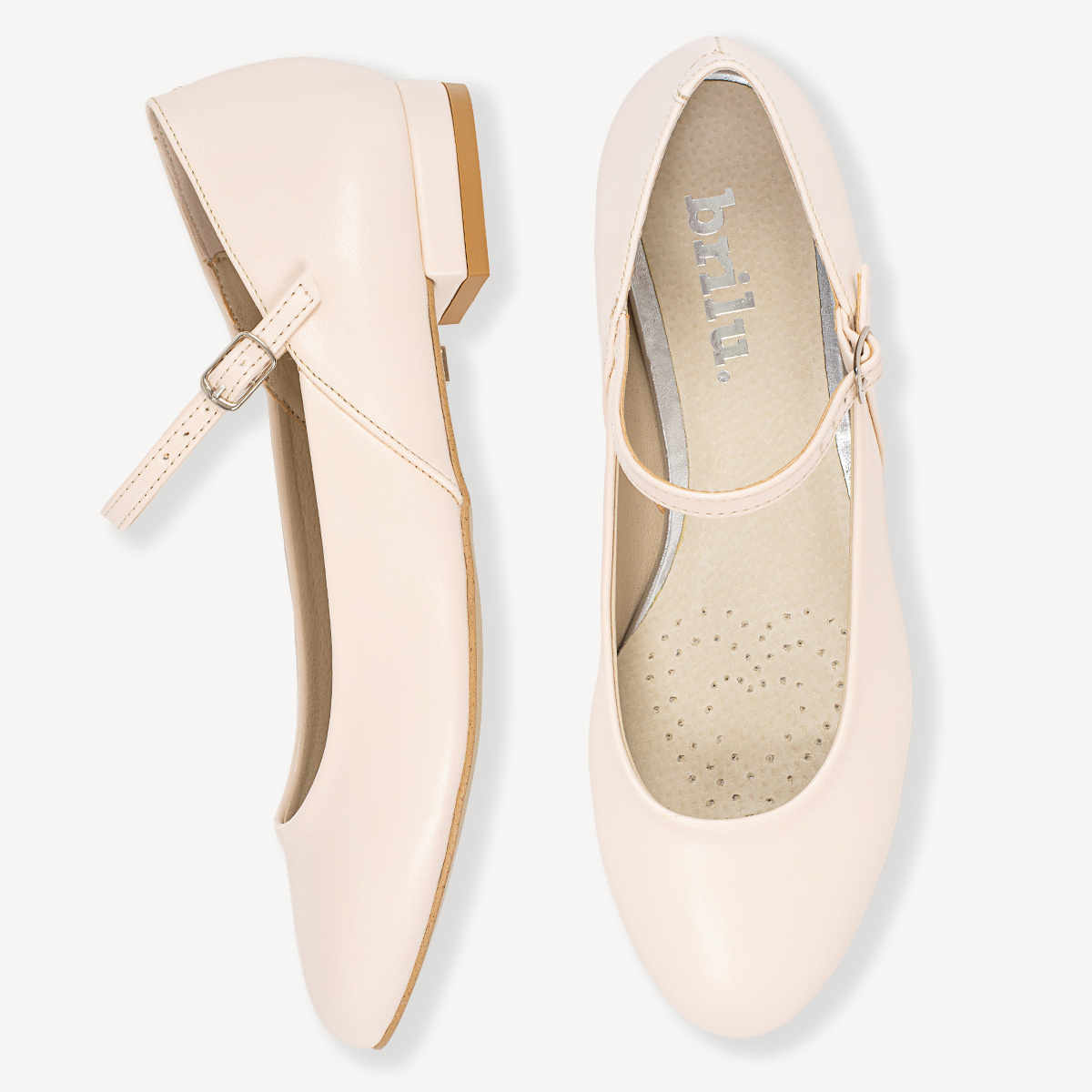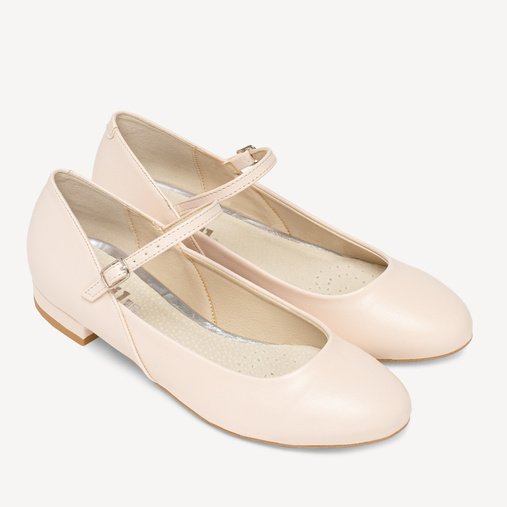 Ślubne balerinki z paskiem Leah cieliste ecru