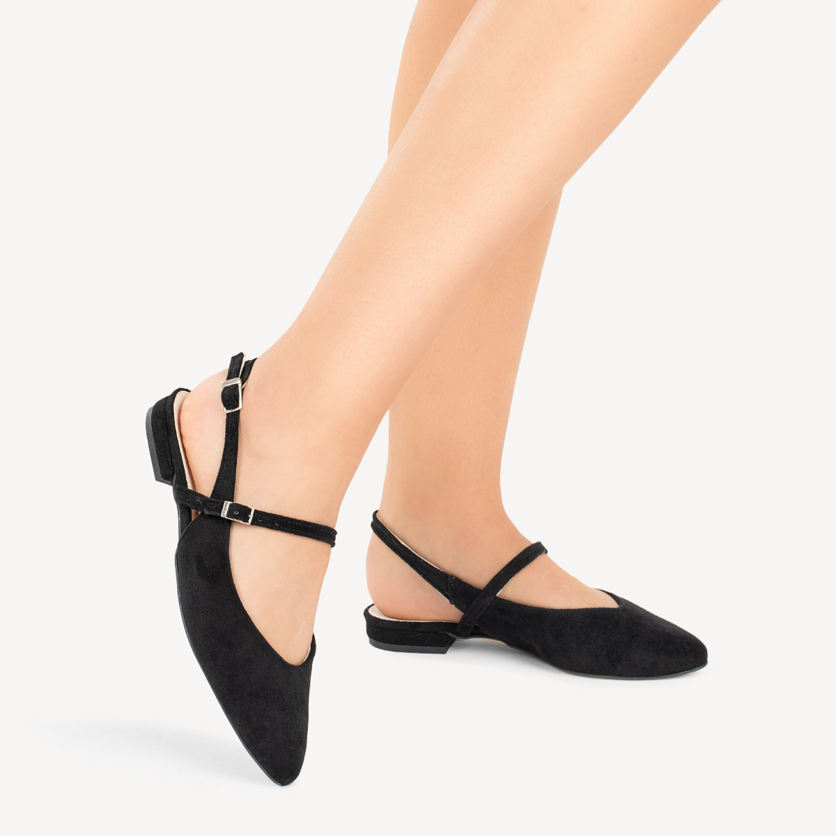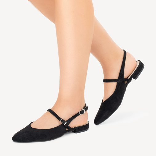 Zamszowe balerinki z odkrytą piętą Shannon czarne
