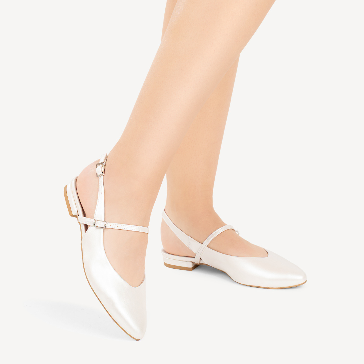 Ślubne perłowe balerinki z odkrytą piętą Arcadia ivory