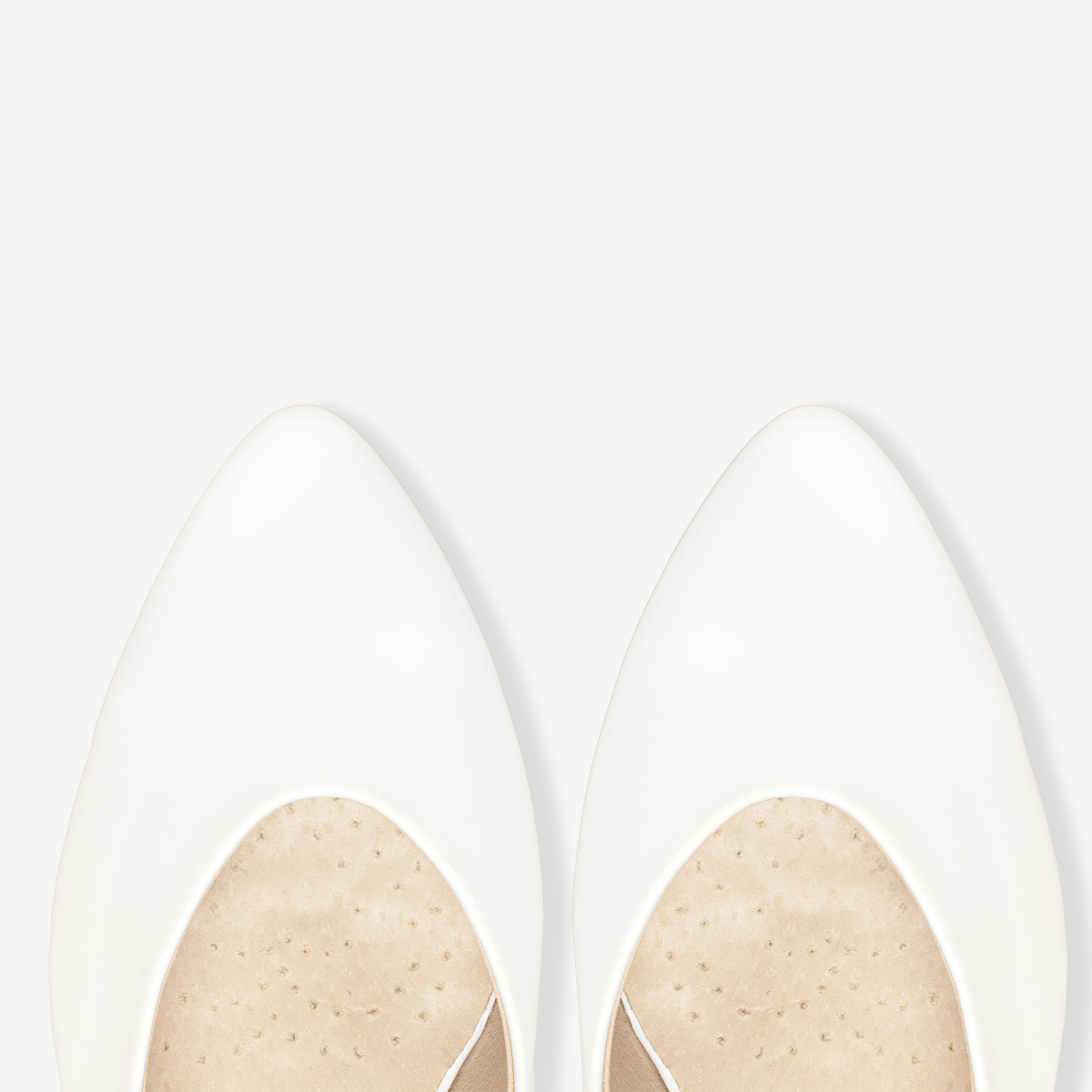 Białe balerinki z paskiem Arcadia posiadają wygodną, skórzaną wkładkę w systemie Doubly Comfy oraz płaski obcas o wysokości 1,5 cm, co gwarantuje pełen komfort oraz pewność kroku przez cały dzień. Białe baletki Arcadia to buty ślubne, które znakomicie sprawdzą się zarówno jako buty dla panny młodej, eleganckie buty dla gościa, płaskie buty na poprawiny, jak i stylowy model na zmianę, który pozwoli Ci cieszyć się każdym krokiem bez uczucia zmęczenia.