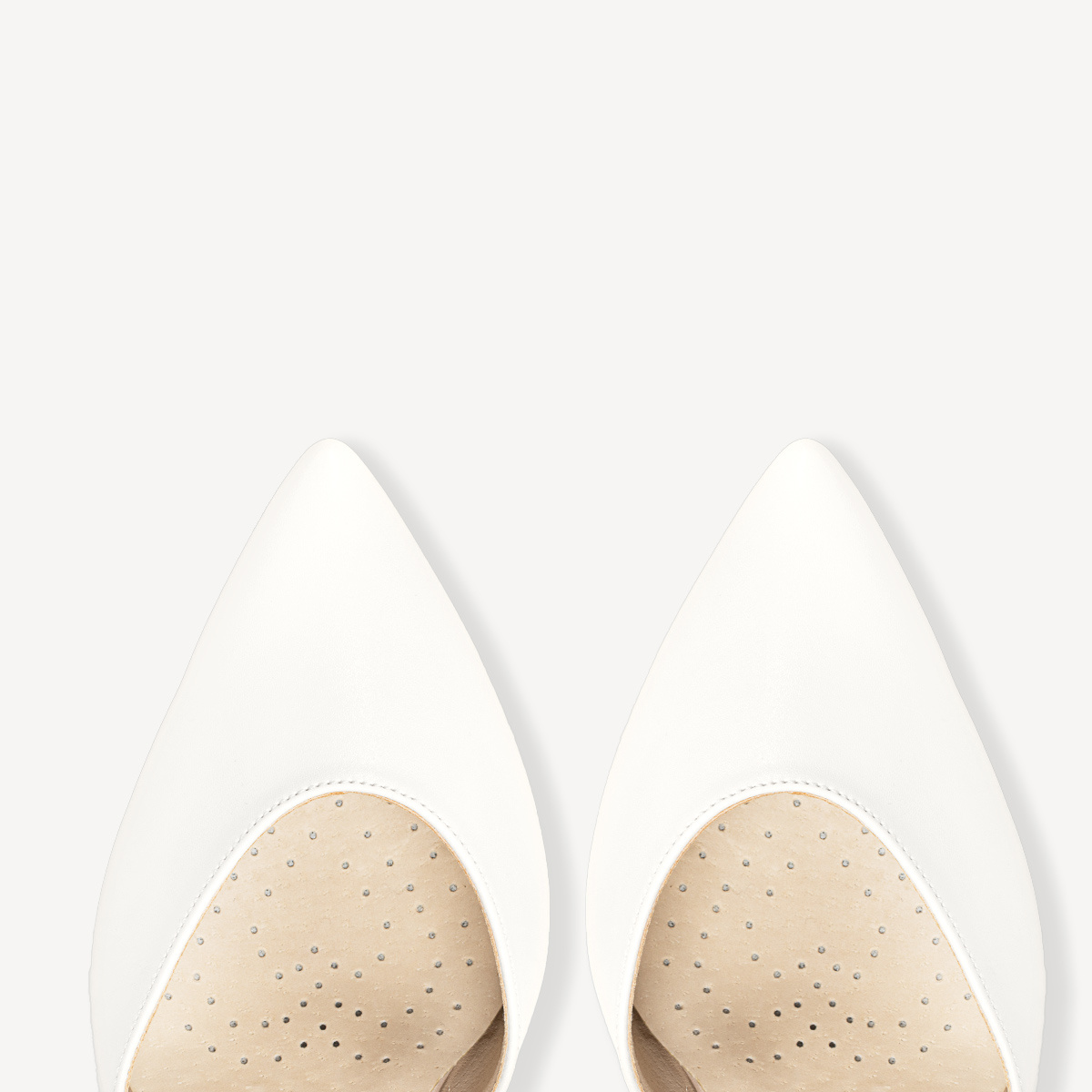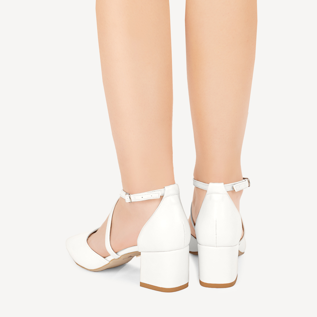 Czółenka na słupku Anastazja to buty do ślubu które łączą w sobie klasyczny design oraz wygodę użytkowania - idealne na ślub, romantyczne przyjęcie lub inne wyjątkowe okazje. Biały kolor rozświetli Twoją stylizację, a krzyżujące się paski dodają całości lekkości, a także zapewniają lepsze dopasowanie. Białe czółenka z paskami Anastazja zaprojektowano tak, aby zostały z Tobą na lata, niezależnie od zmieniających się trendów.