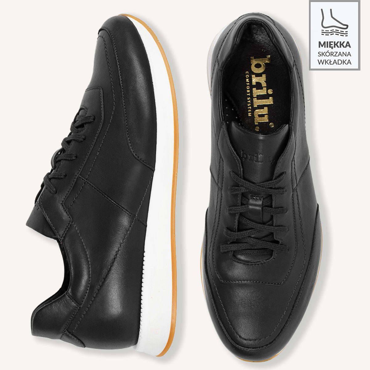 Czarne sneakersy Ryder to doskonałe uzupełnienie męskiej garderoby. Sprawdzą się zarówno podczas weekendowych spacerów, jak i podczas codziennych obowiązków. Ich uniwersalny kolor i design sprawiają, że to najlepszy wybór dla mężczyzn, którzy lubią łączyć wygodę z eleganckim luzem. Wybierając sneakersy od polskiej marki Brilu, inwestujesz w trwałość i najwyższą jakość.