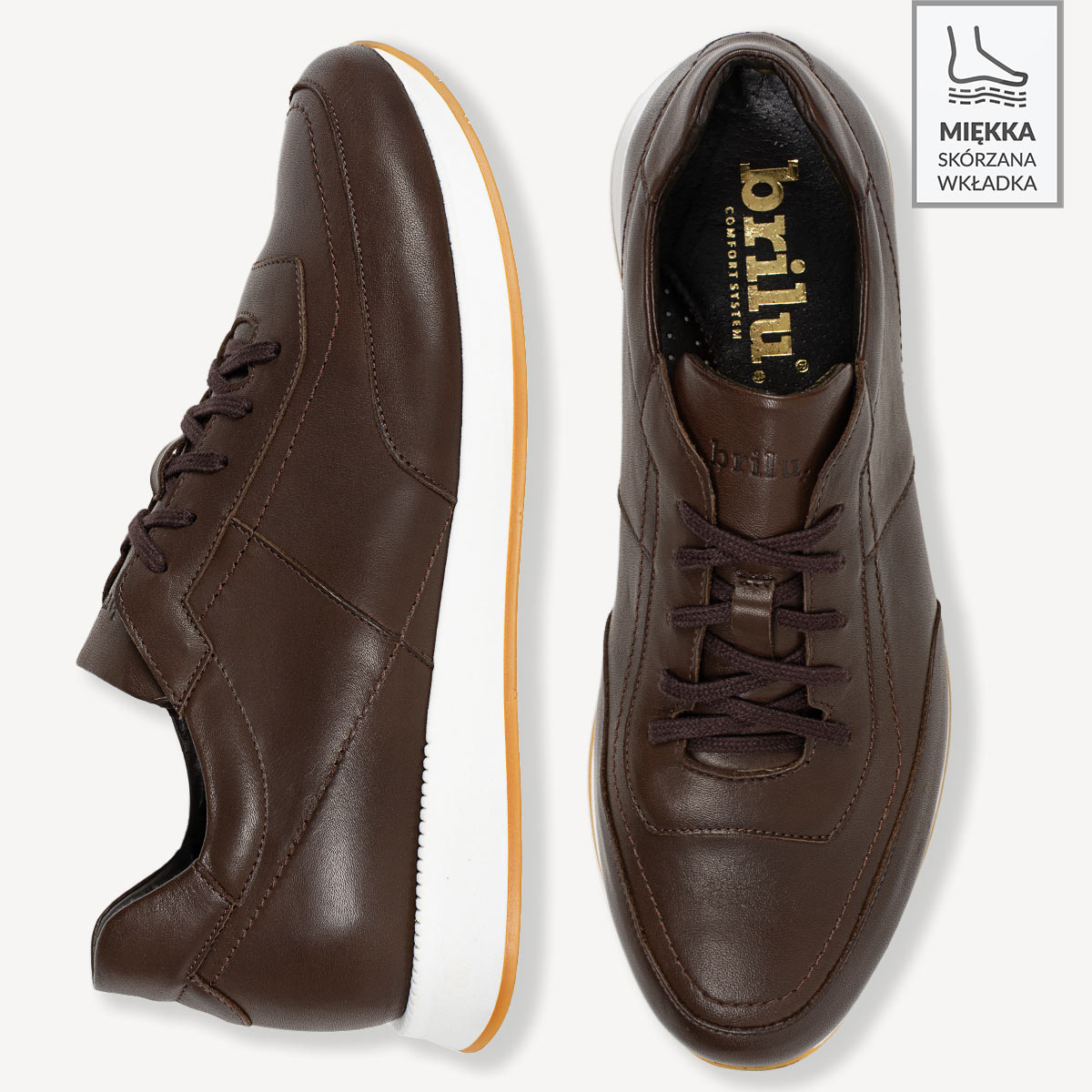 Sneakersy brązowe Ryder to doskonałe uzupełnienie męskiej garderoby. Sprawdzą się zarówno podczas weekendowych spacerów, jak i podczas codziennych obowiązków. Ich uniwersalny kolor i design sprawiają, że to najlepszy wybór dla mężczyzn, którzy lubią łączyć wygodę z eleganckim luzem. Wybierając sneakersy od polskiej marki Brilu, inwestujesz w trwałość i najwyższą jakość.