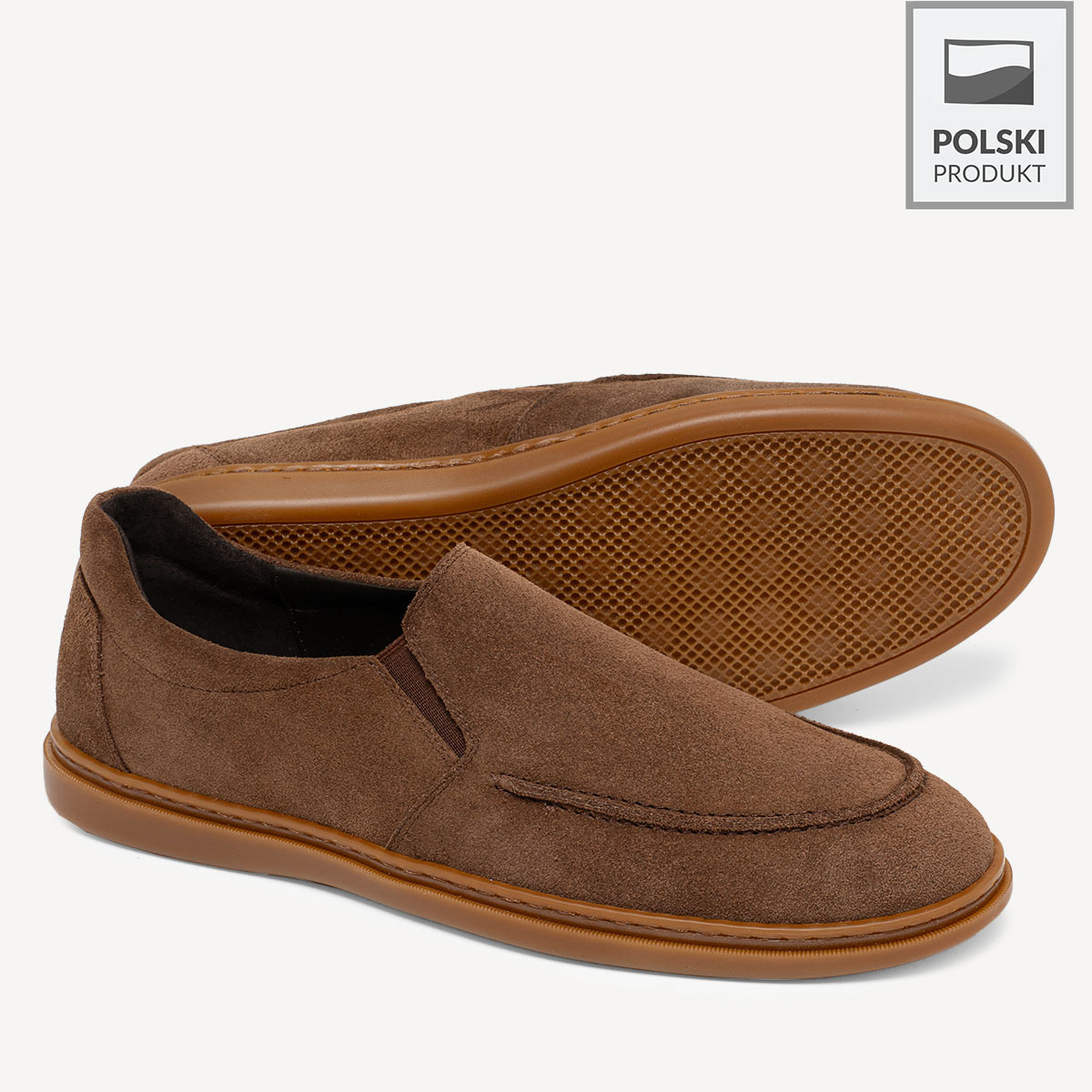 Skórzane zamszowe loafersy męskie Zeiden brązowe