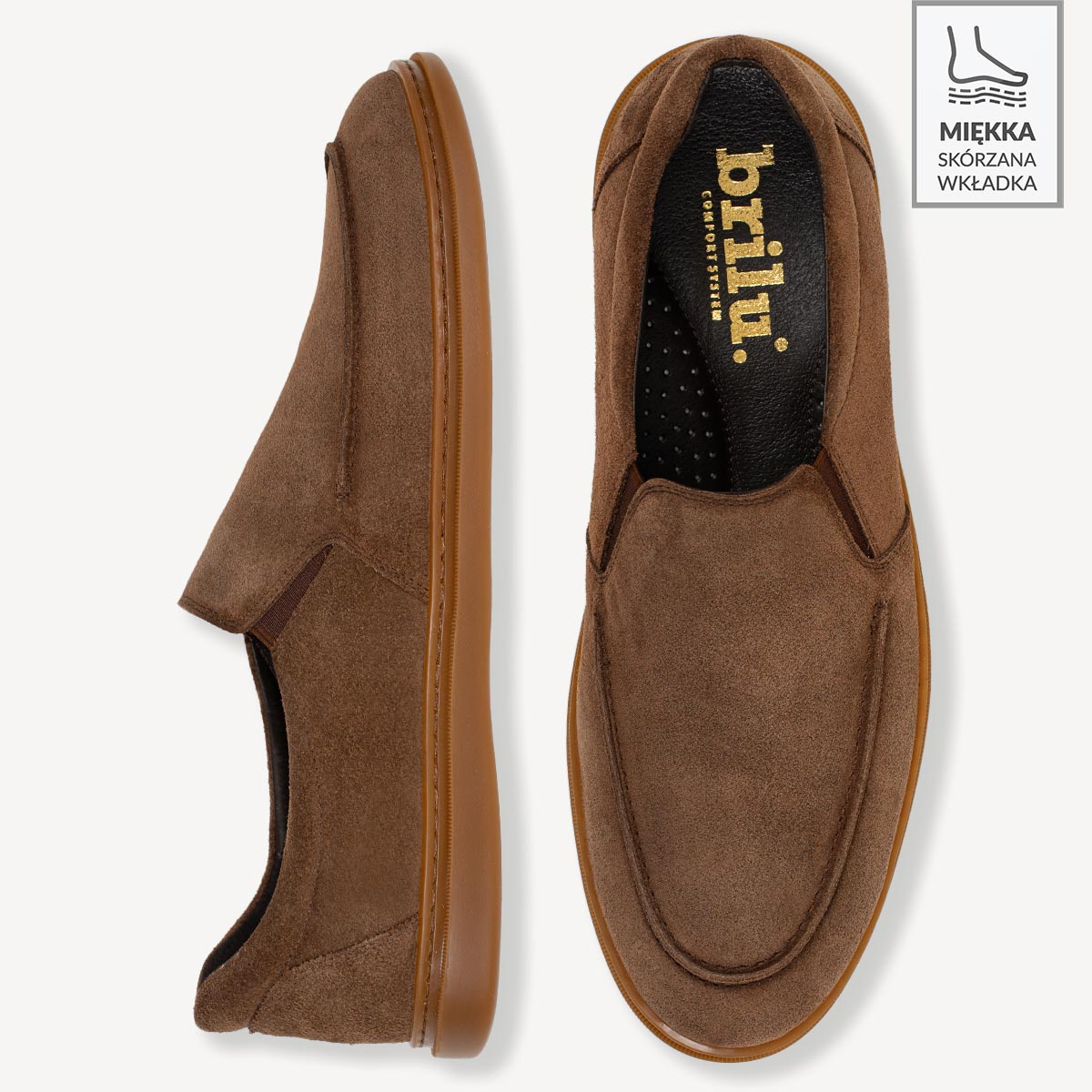 Loafersy brązowe Zeiden to obuwie męskie, które świetnie odnajdzie się zarówno w codziennych, jak i swobodnych zestawieniach w stylu smart-casual. To model, który będziesz mógł założyć do pracy, na spotkania ze znajomymi lub w podróży, gdzie liczy się pełen komfort. Wybierając loafersy Zeiden od polskiej marki Brilu, stawiasz na jakość, polskie rzemiosło i ponadczasowy design, który zostanie w Twojej garderobie na lata.