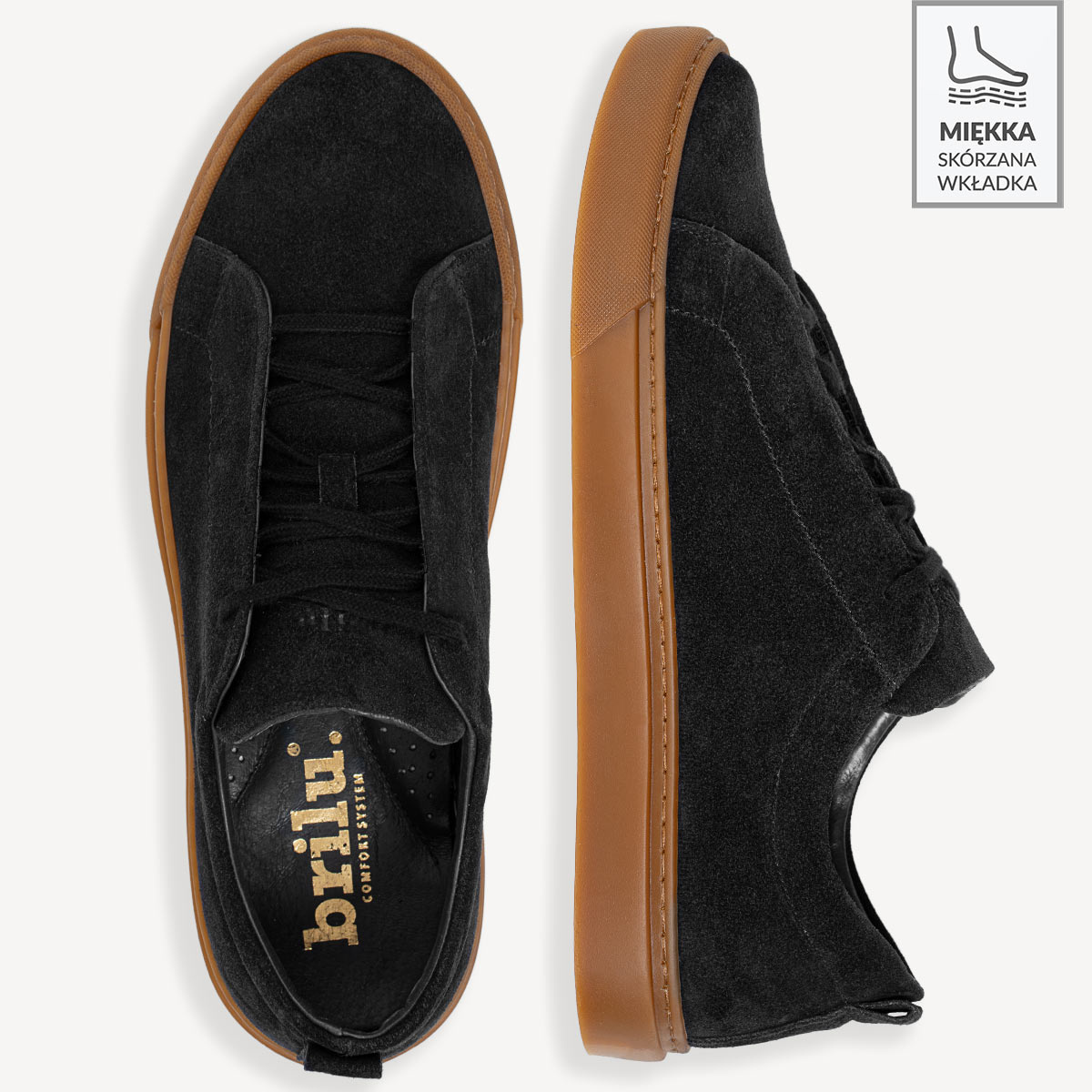 Męskie skórzane zamszowe sneakersy Edison czarne