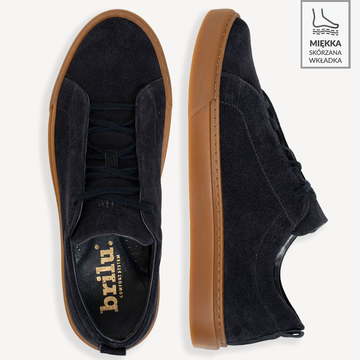 Męskie skórzane zamszowe sneakersy Edison granatowe