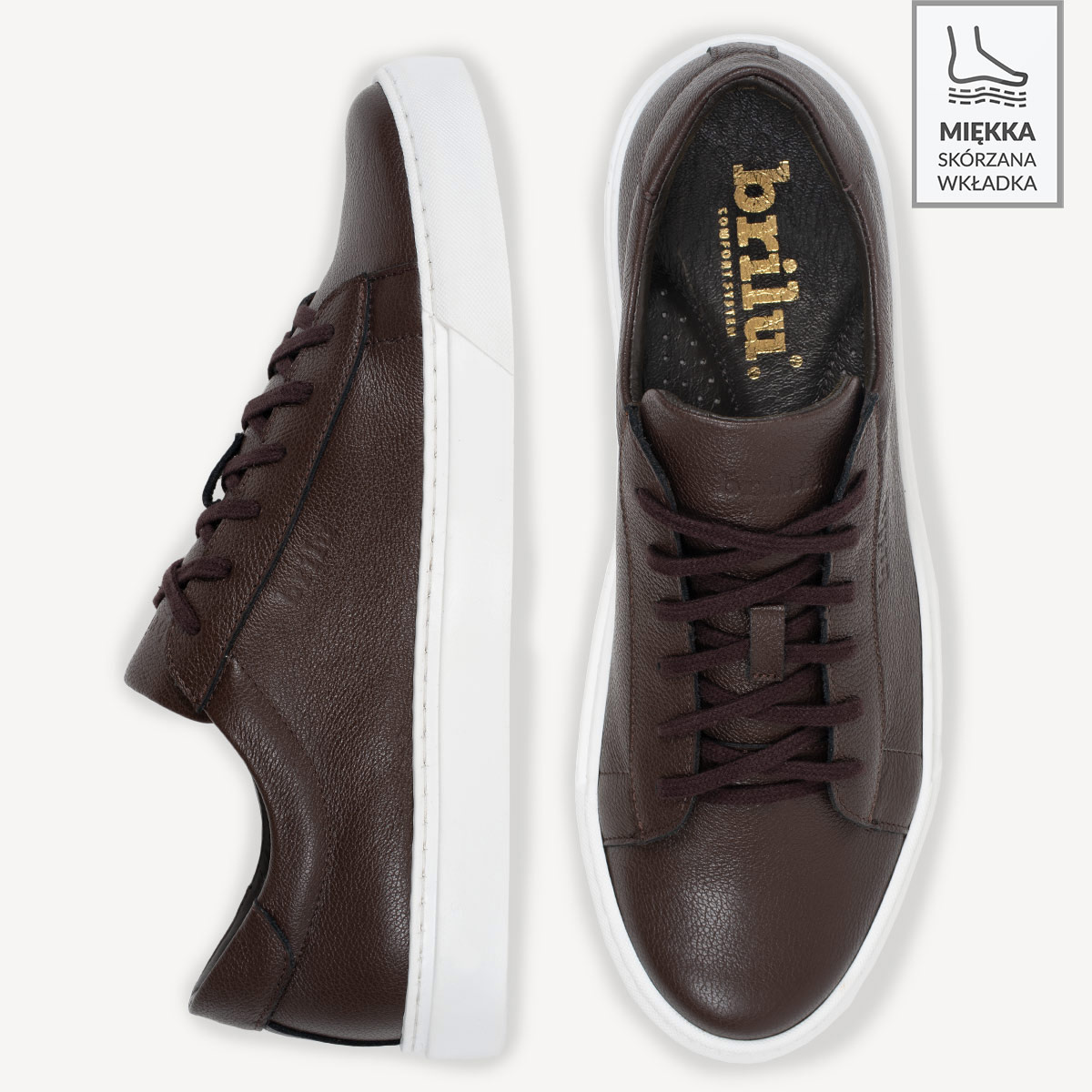 Klasyczne, eleganckie trampki brązowe Zack łączą pełen komfort z nowoczesnym, minimalistycznym designem. Idealnie skomponują się z dżinsami, chinosami, a nawet lekką marynarką. Brązowe sneakersy Zack bez problemu wpiszą się w codzienny dress code - od zestawień z ulubionymi jeansami, po outfity w stylu smart-casual. Wybierając buty od polskiej marki Brilu, inwestujesz w wygodę, trwałość i najwyższą jakość.