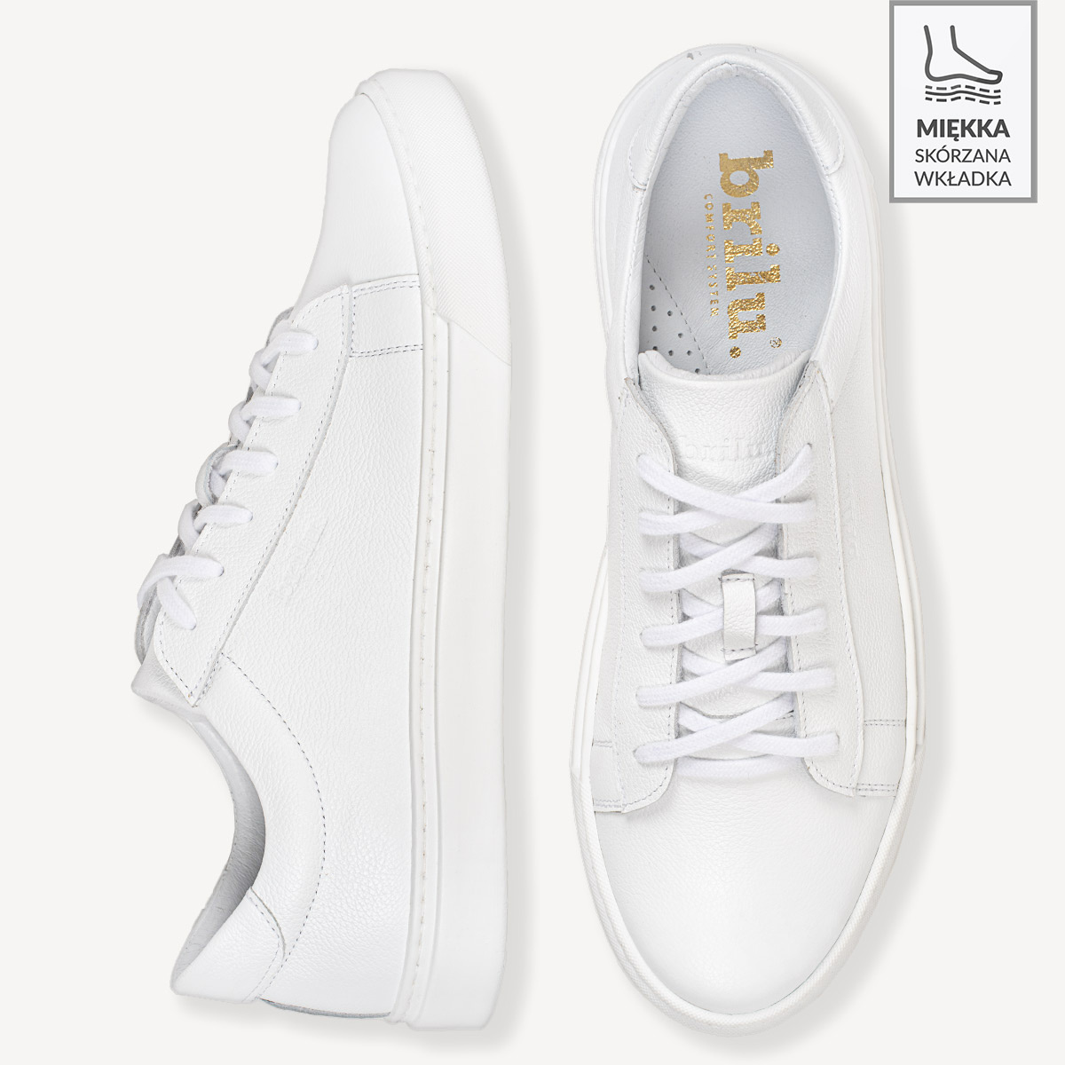 Klasyczne, białe eleganckie trampki Zack łączą pełen komfort z nowoczesnym, minimalistycznym designem. Idealnie skomponują się z dżinsami, chinosami, a nawet lekką marynarką. Skórzane białe sneakersy Zack bez problemu wpiszą się w codzienny dress code - od zestawień z ulubionymi jeansami, po outfity w stylu smart-casual. Wybierając buty od polskiej marki Brilu, inwestujesz w wygodę, trwałość i najwyższą jakość.
