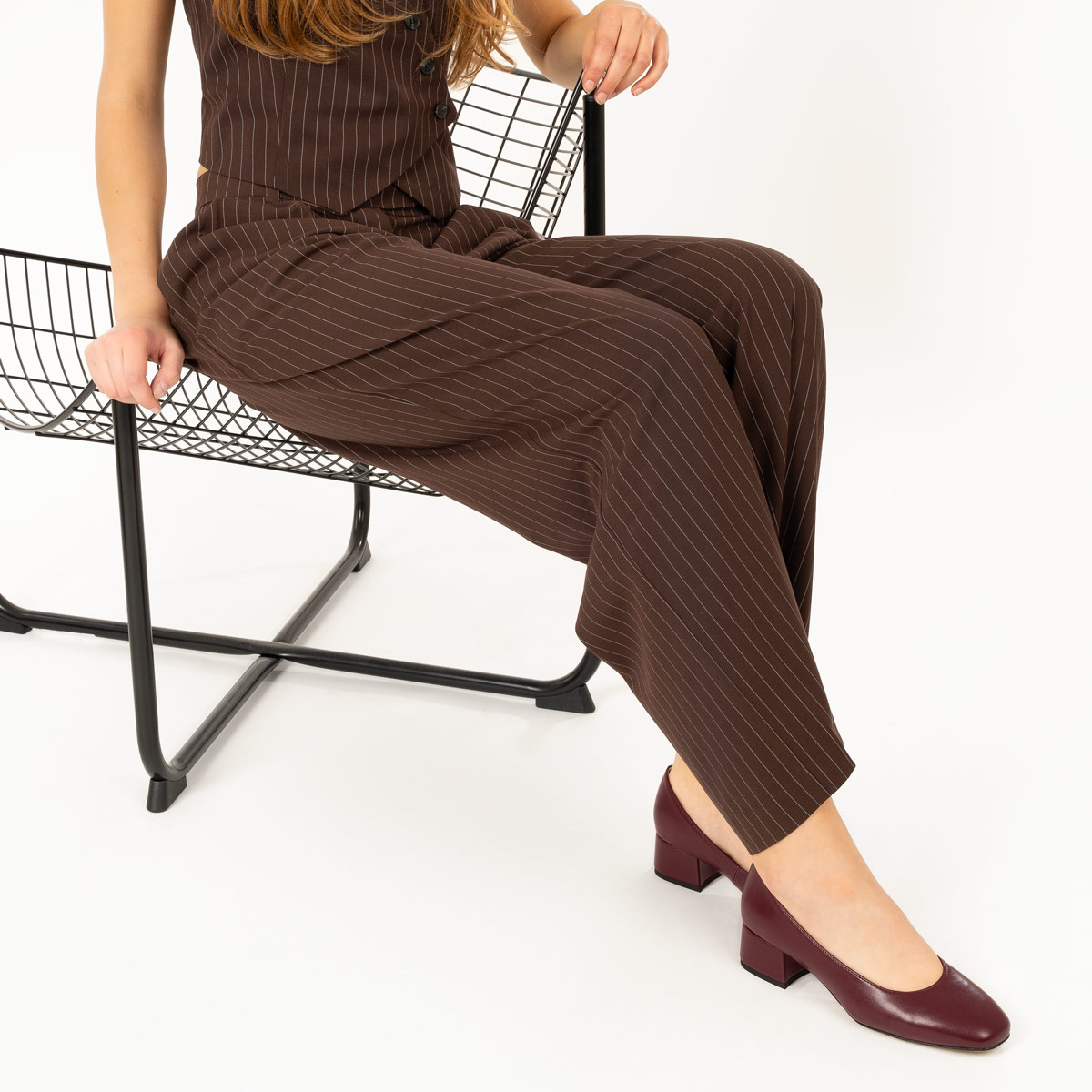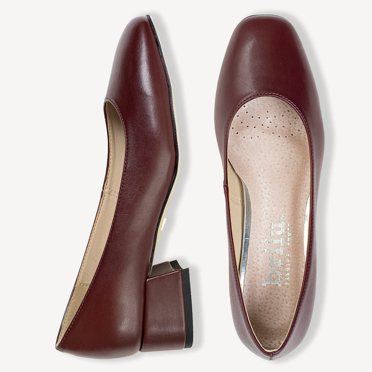 Poznaj bliżej czółenka na niskim obcasie Ember w kolorze bordowym - idealne połączenie nowoczesności z ponadczasową elegancją. Te wyjątkowe buty zostały stworzone z myślą o kobietach, które chcą czuć się komfortowo niezalenie od okazji. Model Ember to eleganckie czółenka z kwadratowym noskiem od polskiej marki Brilu. Wyprodukowane z wysokiej jakości skóry syntetycznej, zachwycają precyzyjnym wykończeniem oraz dbałością o detale.