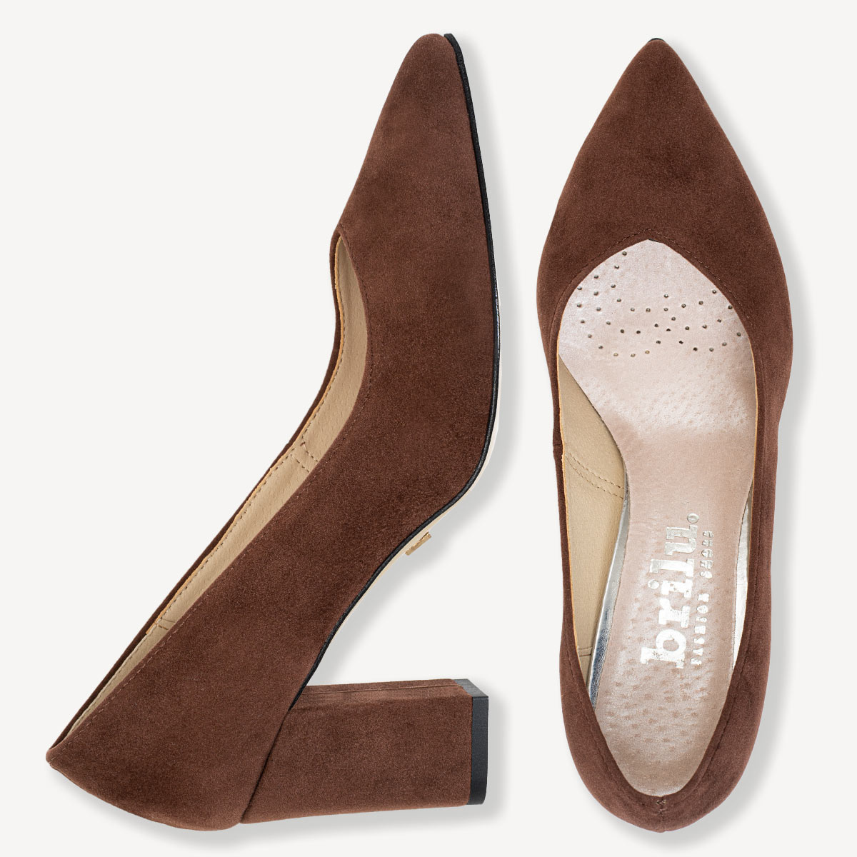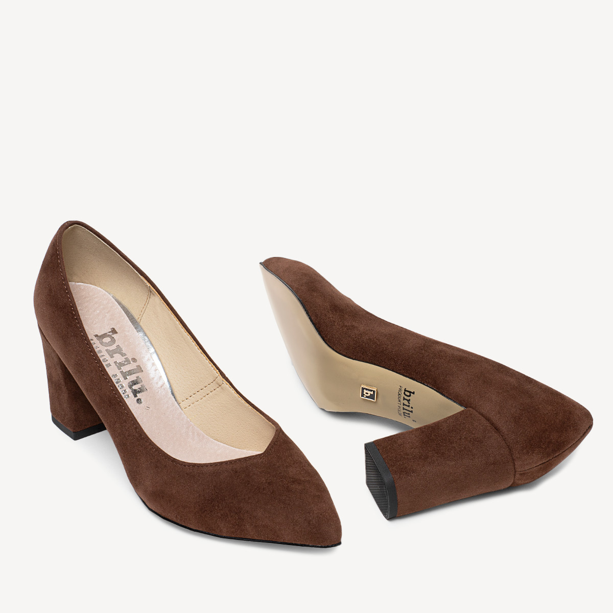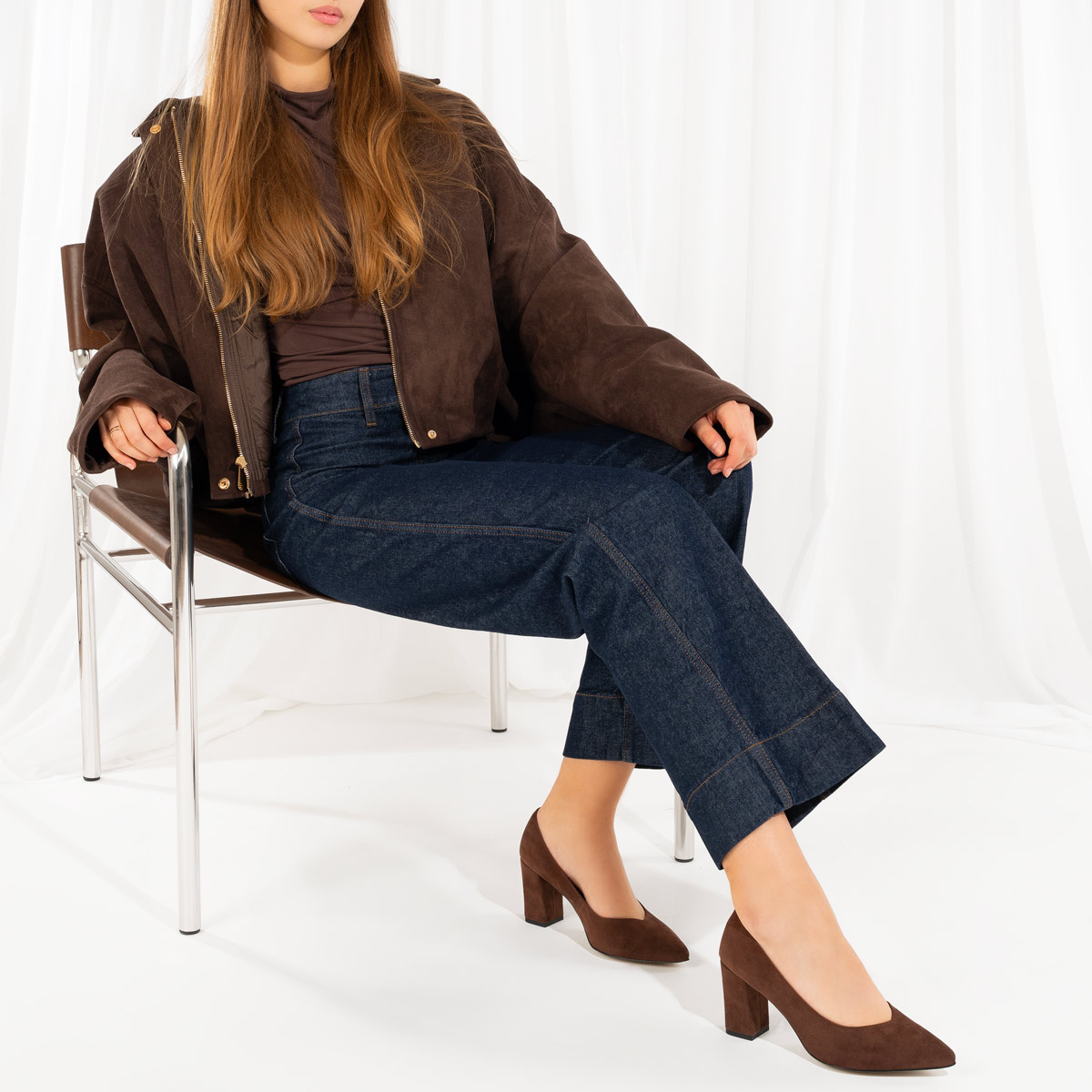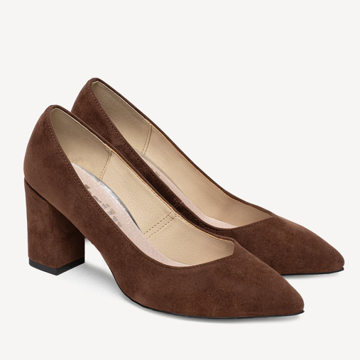 Zamszowe klasyczne czółenka na słupku Fairy brązowe