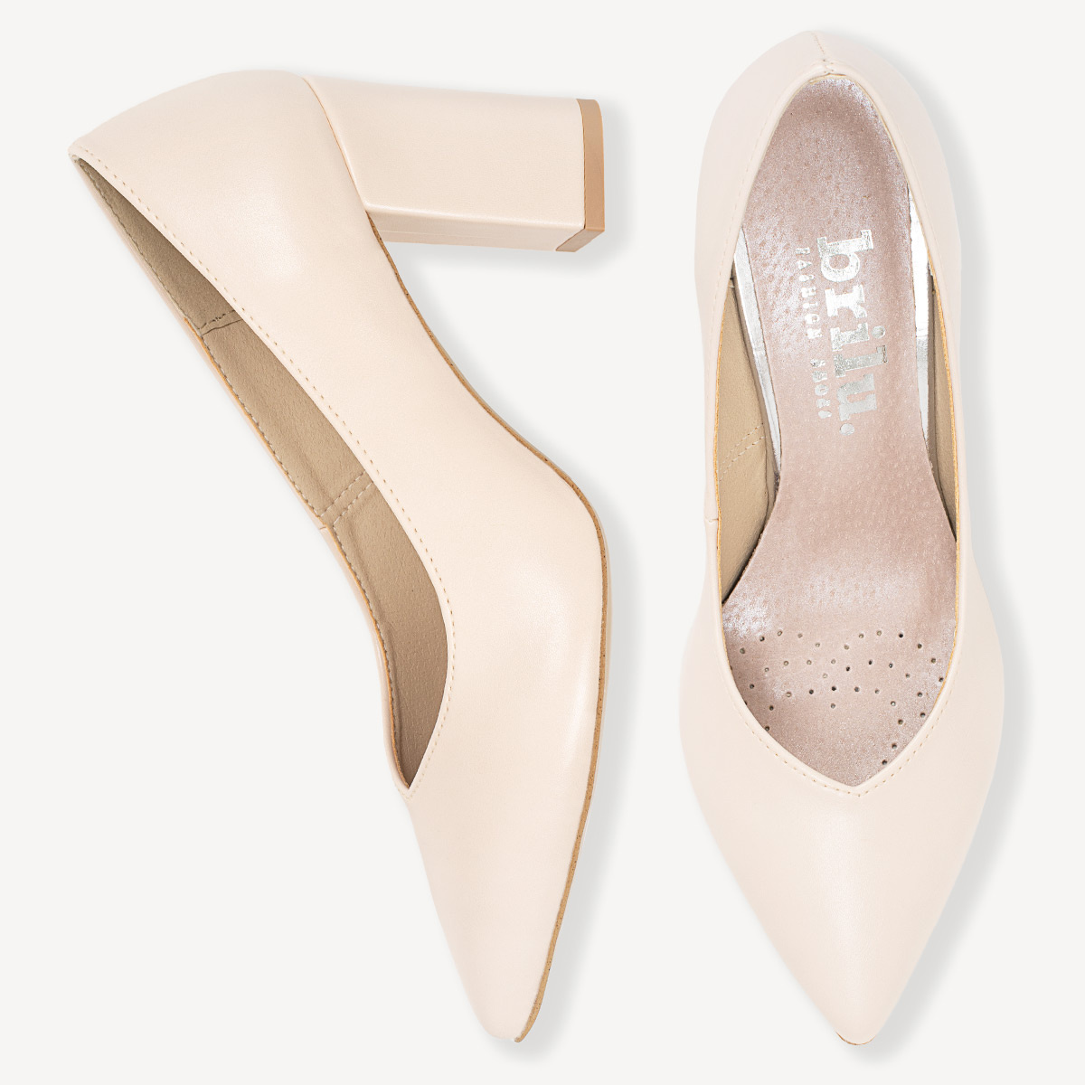 Ślubne klasyczne czółenka na słupku Desire cieliste ecru