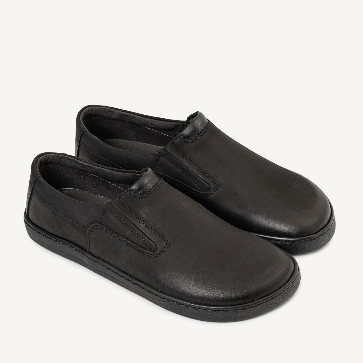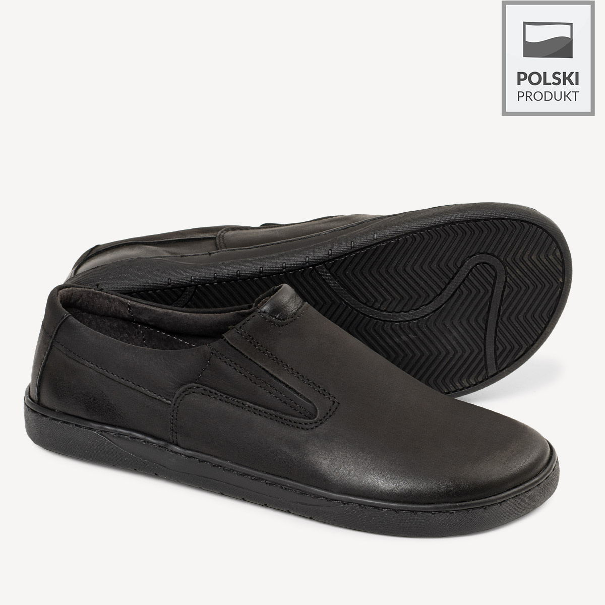 Męskie skórzane półbuty wkładane barefoot Wayne czarne