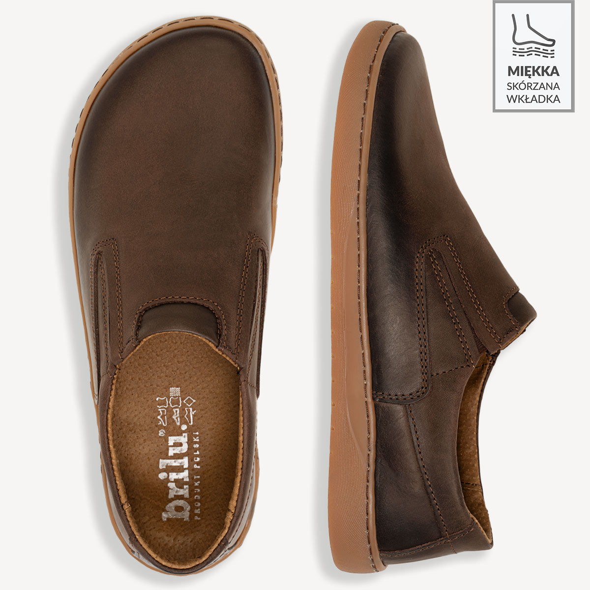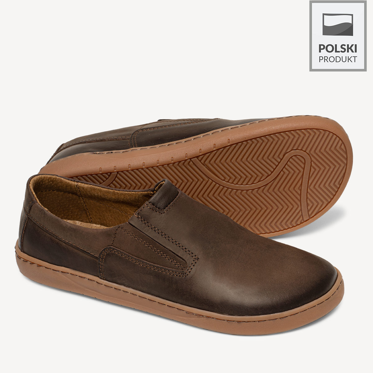 Męskie skórzane półbuty wkładane barefoot Wayne brązowe