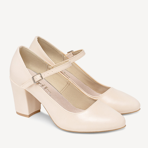 Ślubne perłowe czółenka z paskiem Caroline ecru