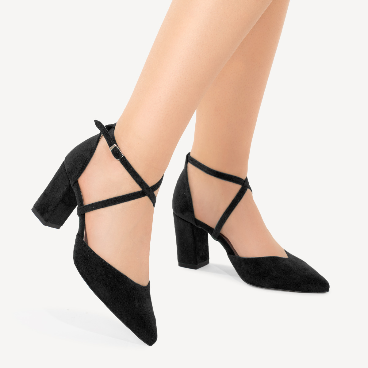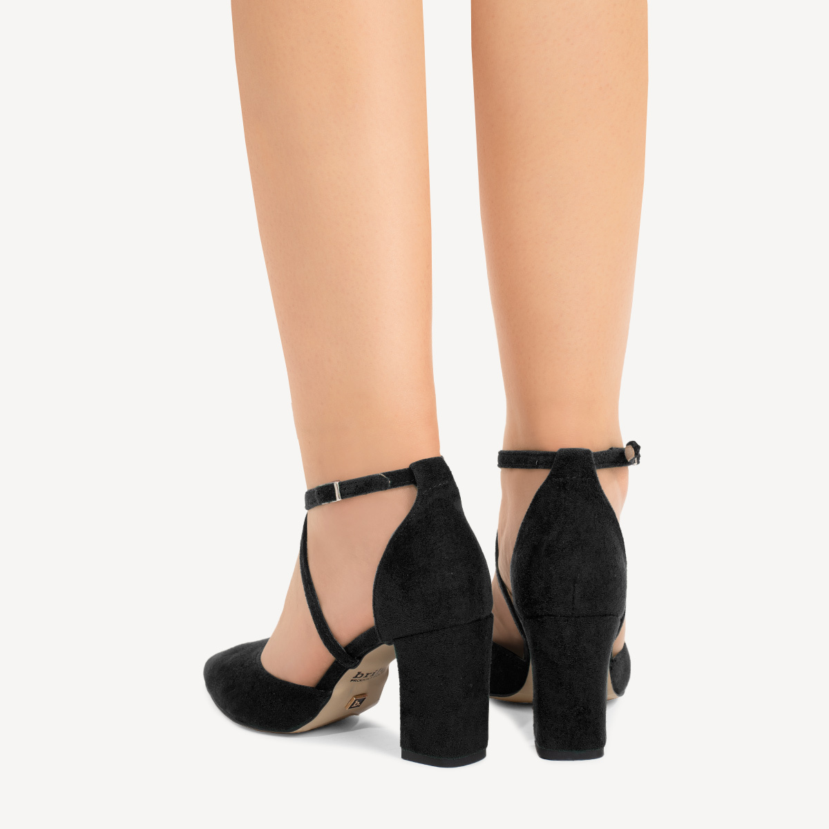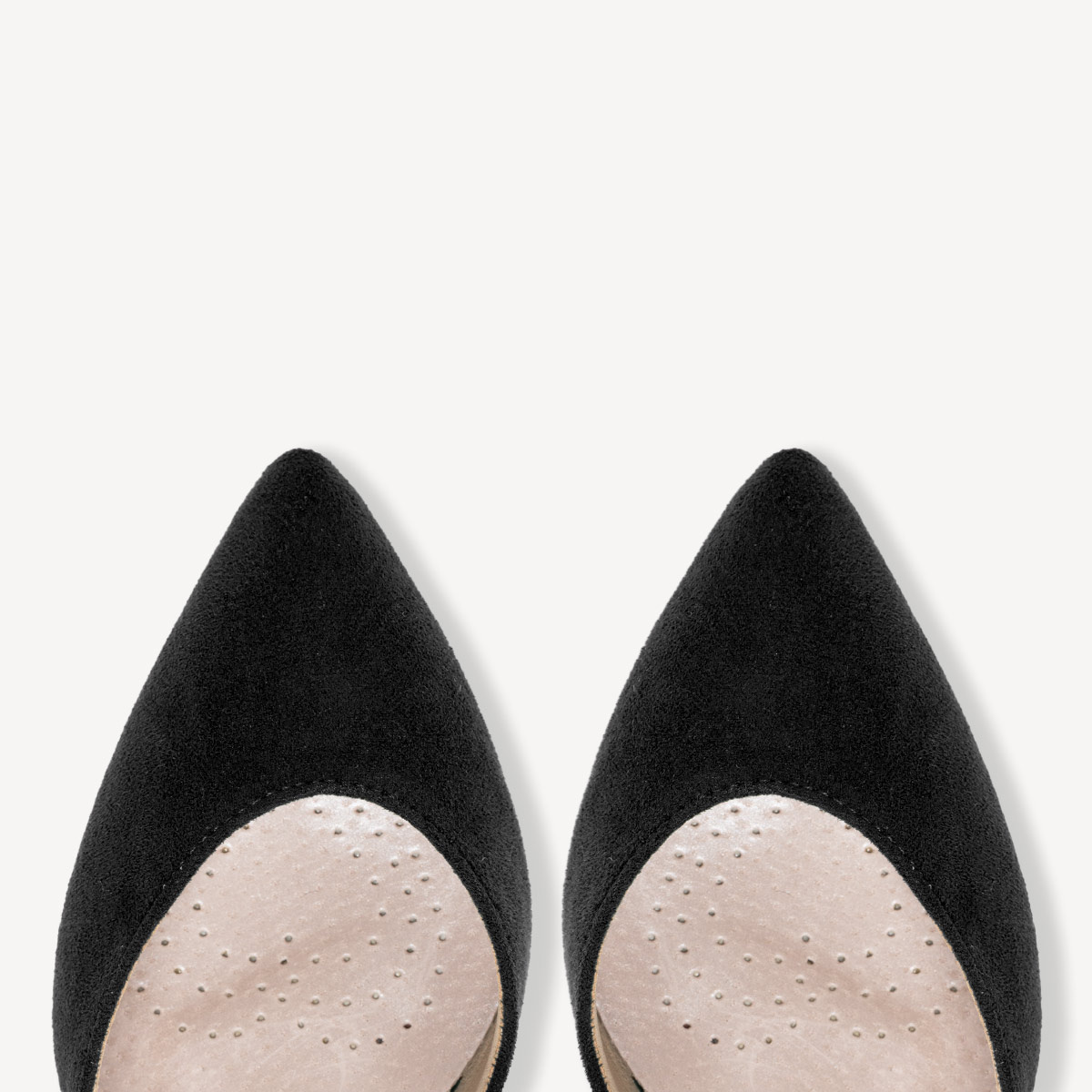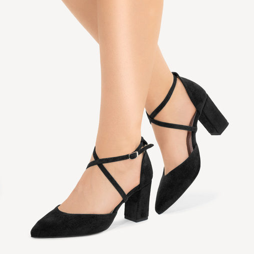 Zamszowe czółenka na słupku z paskami Savanna czarne