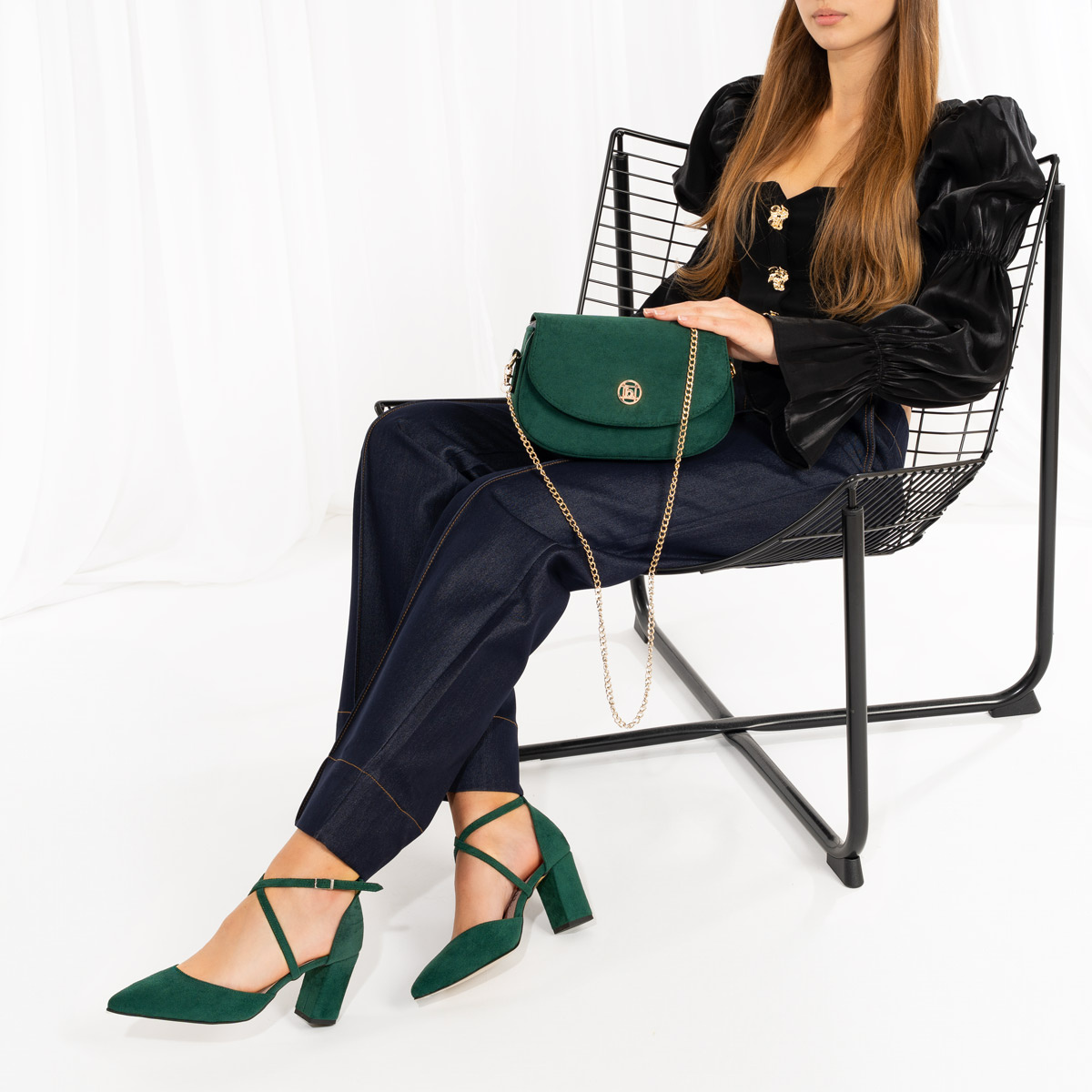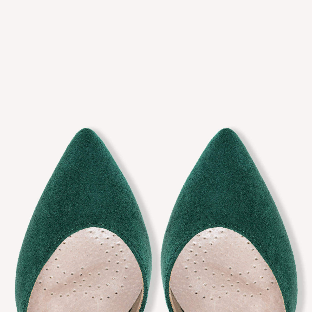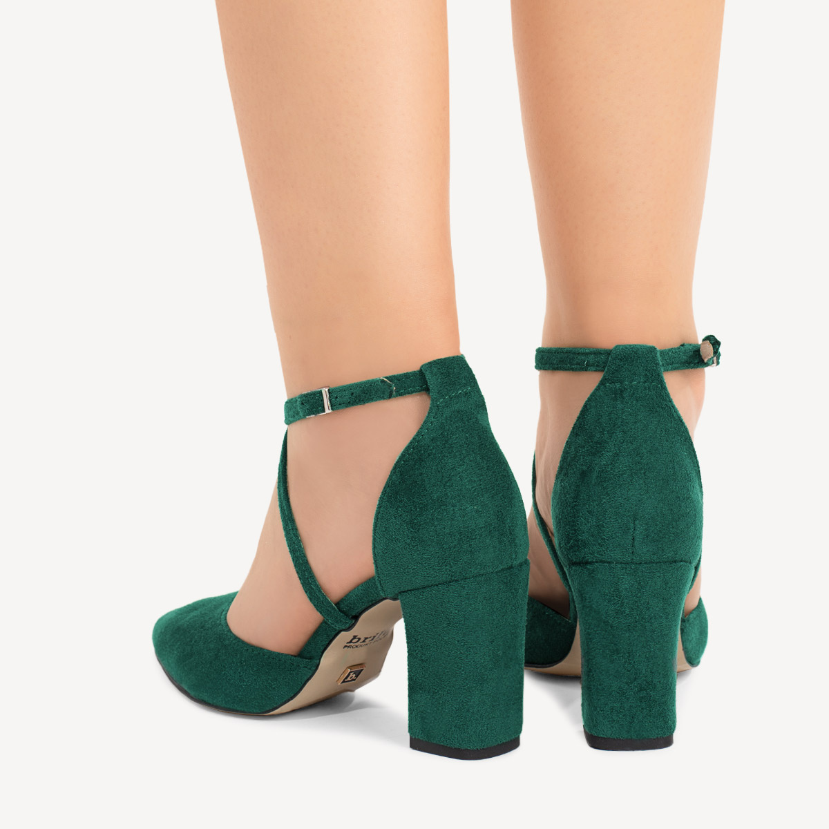 Zamszowe czółenka na słupku z paskami Savanna zielone