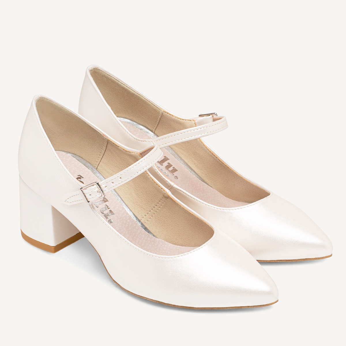 Ślubne perłowe czółenka z paskiem Cheryl ivory