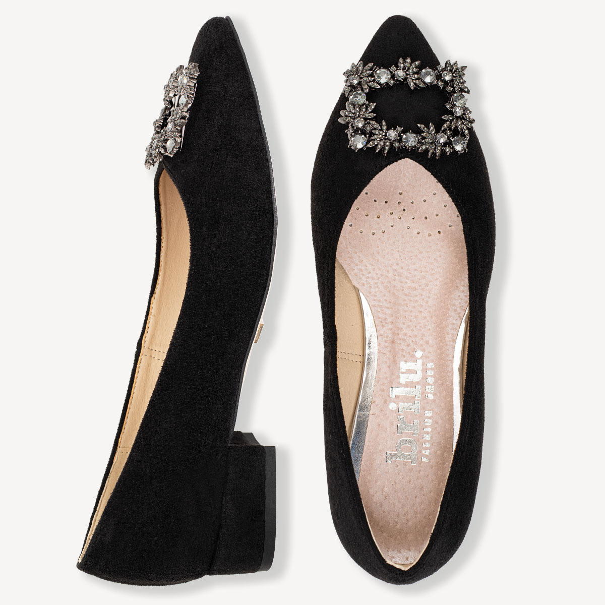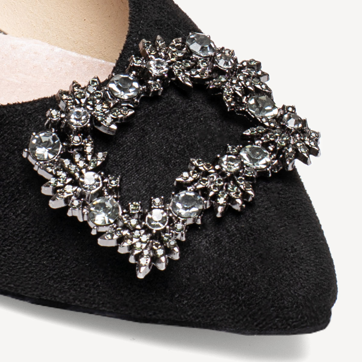Zamszowe balerinki z ozdobna klamrą Amara czarne