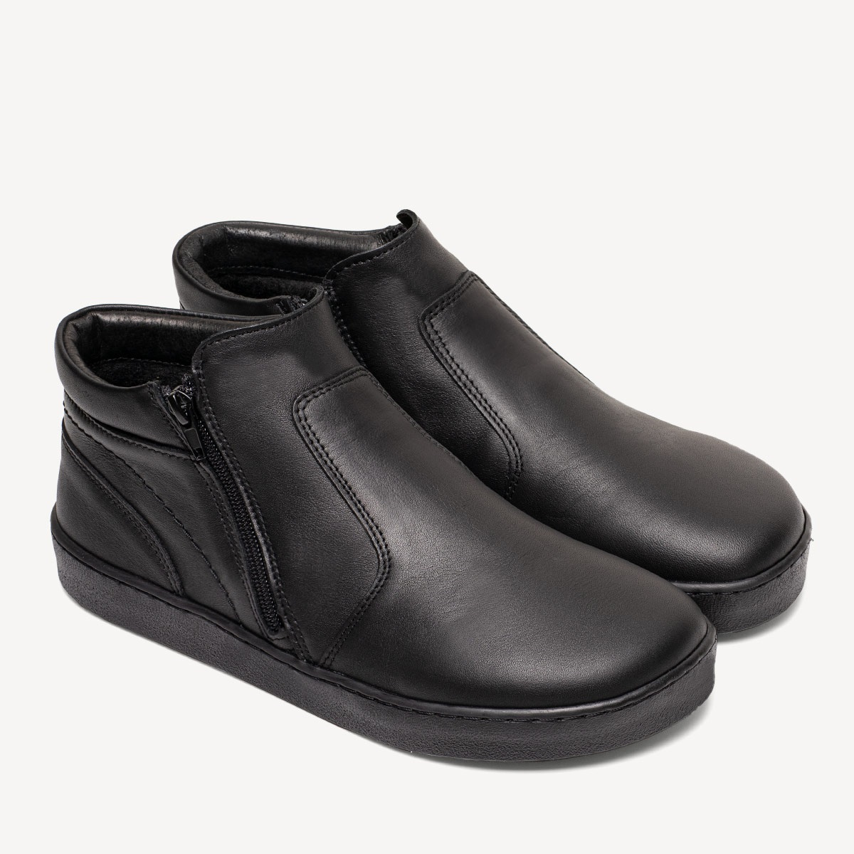 Skórzane trzewiki męskie Anders to buty barefoot zaprojektowane dla mężczyzn, którzy potrzebują niezawodnego obuwia na chłodniejsze miesiące. Charakterystyczny szeroki nosek umożliwia swobodne ułożenie palców, eliminując uczucie ucisku i dyskomfortu. Czarne trzewiki Anders zostały wykonane z wysokogatunkowej skóry naturalnej, prezentują się solidnie, a jednocześnie są odporne na codzienne użytkowanie. Praktyczne zapięcie na zamek ułatwia zakładanie butów, a filcowe ocieplenie zapewnia przyjemne ciepło i komfort przy niskich temperaturach.