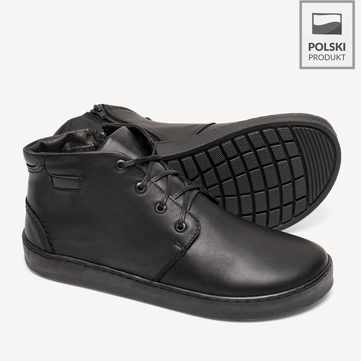 Skórzane trzewiki męskie barefoot Tyrrel czarne