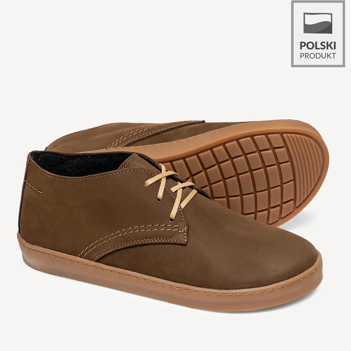 Skórzane zimowe trzewiki barefoot Sean jasny brąz