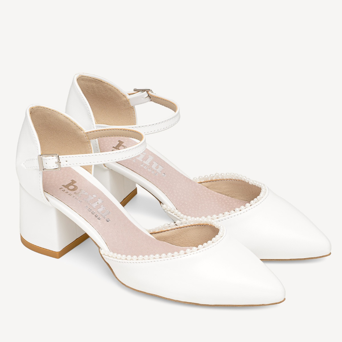 Ślubne ozdobne czółenka z perełkami Eris białe