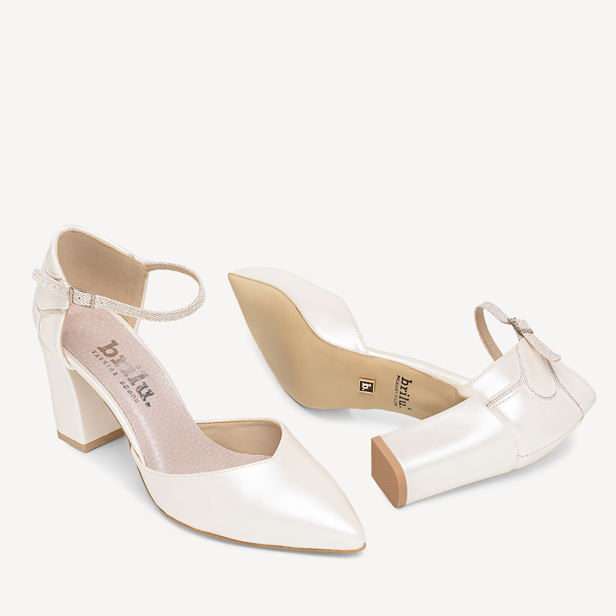 Ślubne perłowe ozdobne czółenka z paskiem Sansa ivory