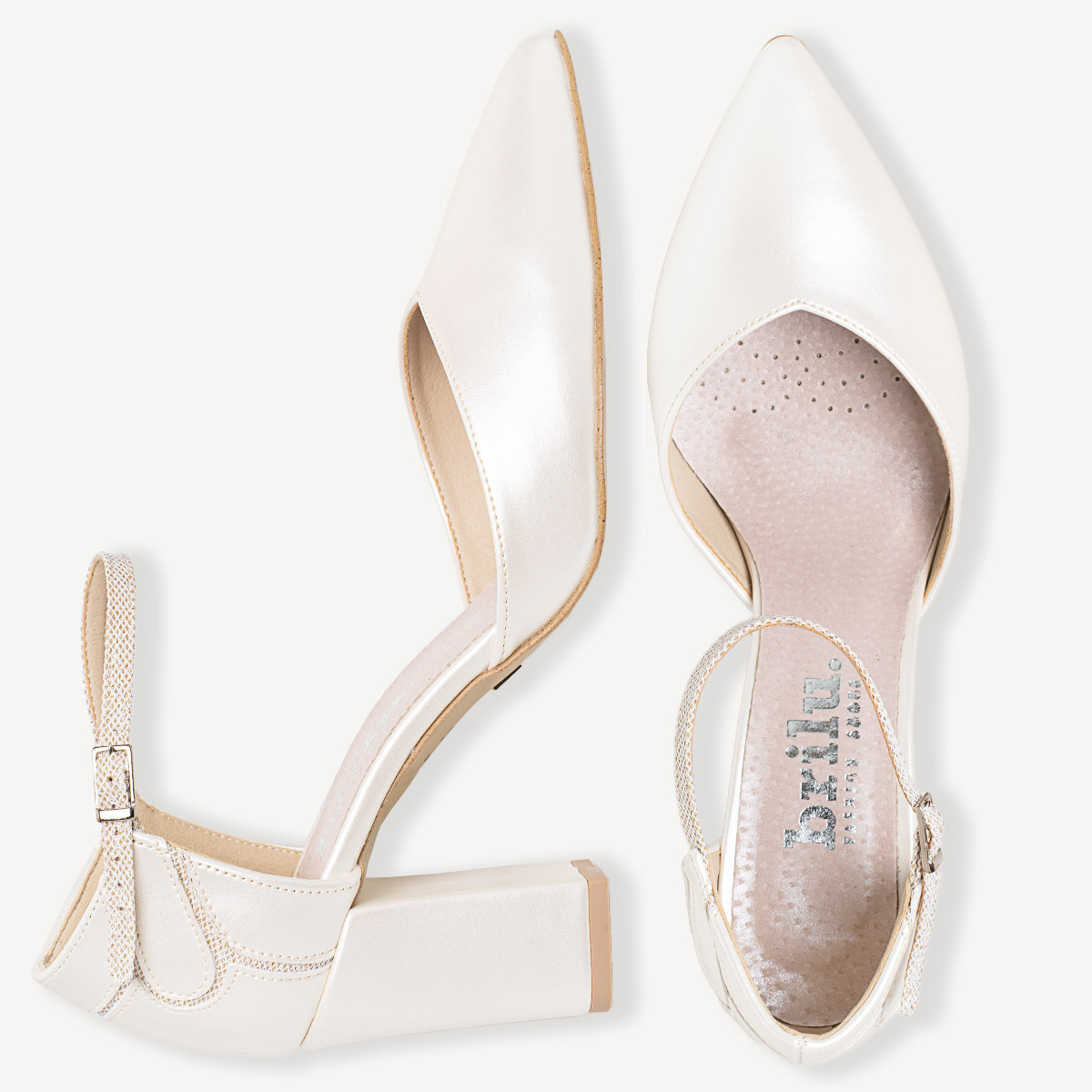 Czółenka z paskiem Sansa to doskonałe buty dla panny młodej, która poszukuje efektownych, a jednocześnie wygodnych butów. Czółenka na słupku Sansa łączą klasyczną linię z nowoczesnym wykończeniem, tworząc obuwie idealne zarówno do tradycyjnych, jak i bardziej nowoczesnych kreacji. To model, który doda Twojemu lookowi lekkości i elegancji, sprawiając, że poczujesz się naprawdę wyjątkowo.