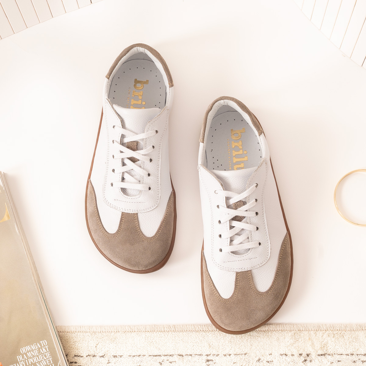 Białe sneakersy damskie Brandy to obuwie stworzone, by towarzyszyć Ci na co dzień – zarówno podczas miejskich spacerów, jak i w dynamicznym rytmie codziennych obowiązków. W modelu Brandy kluczową rolę odgrywa elastyczna podeszwa oraz szeroki nosek, który pozwala palcom pracować w pełnym zakresie, bez ucisku i ograniczeń. Białe sneakersy barefoot wykonano z miękkiej, wysokogatunkowej włoskiej skóry naturalnej. Nowoczesne akcenty kolorystyczne oraz minimalistyczna linia nadają im modnego charakteru. Sneakersy damskie barefoot świetnie uzupełnią codzienne stylizacje – od sportowych po te bardziej casualowe – podkreślą Twoje indywidualne wyczucie stylu.