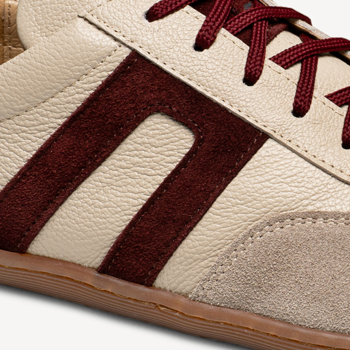 Skórzane damskie sneakersy barefoot Arizona beżowo-bordowe